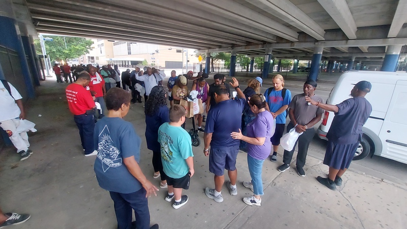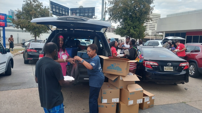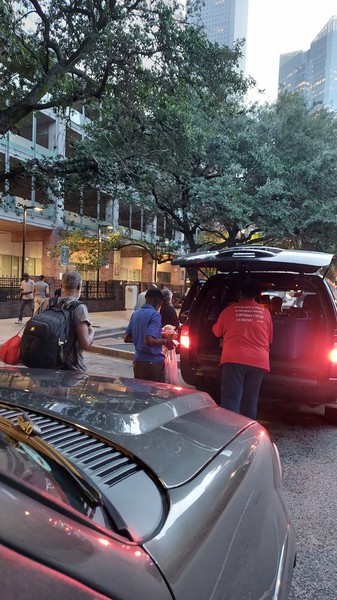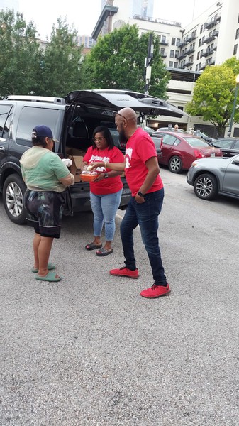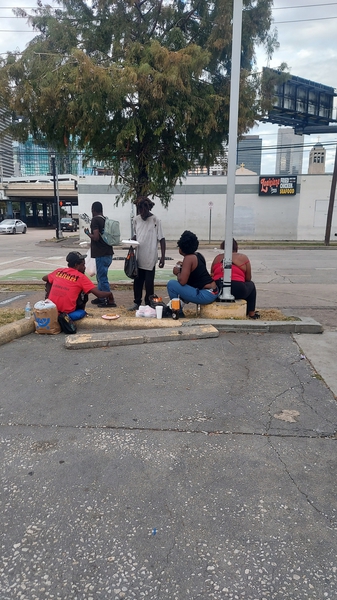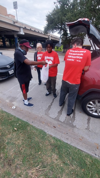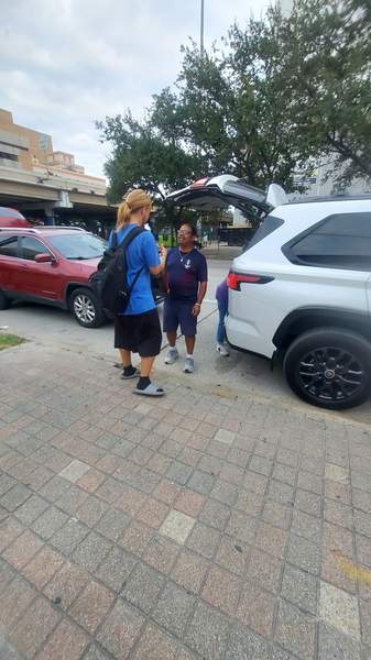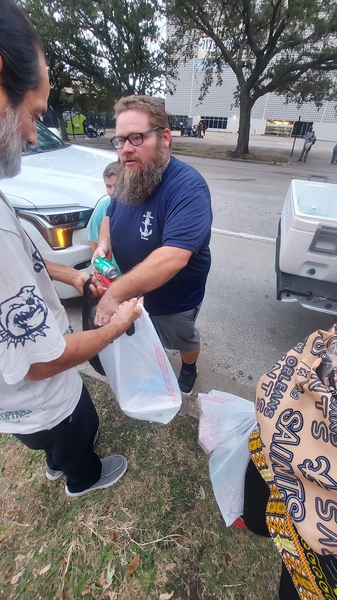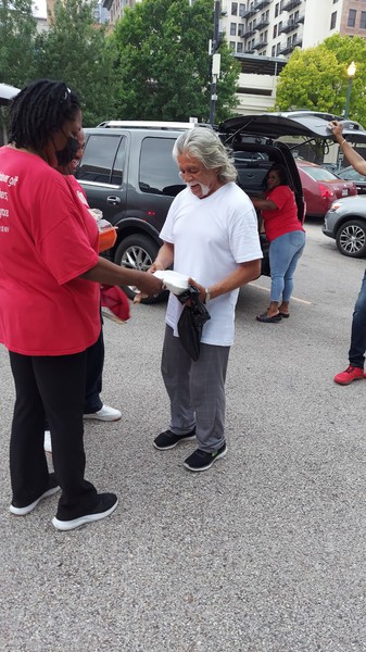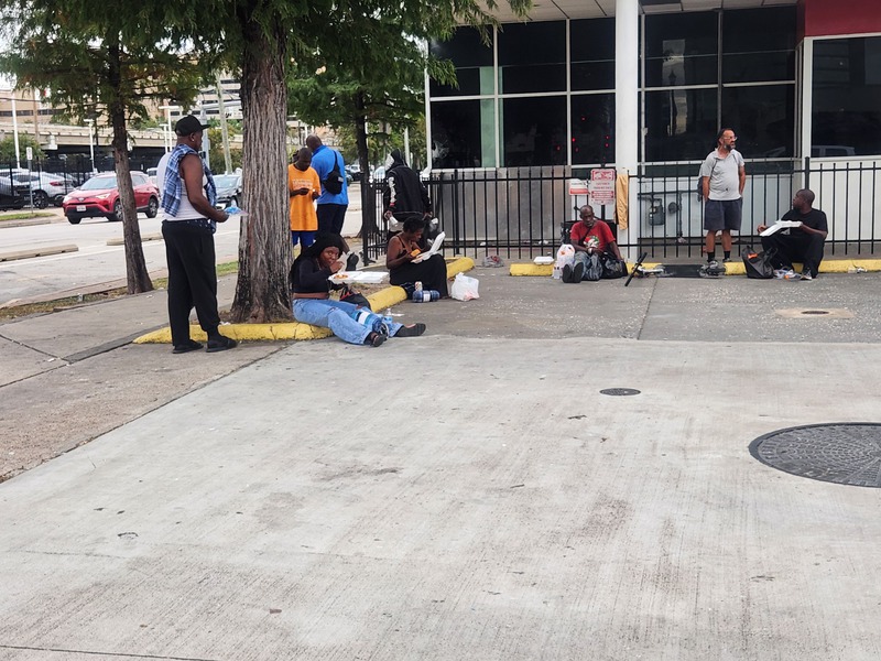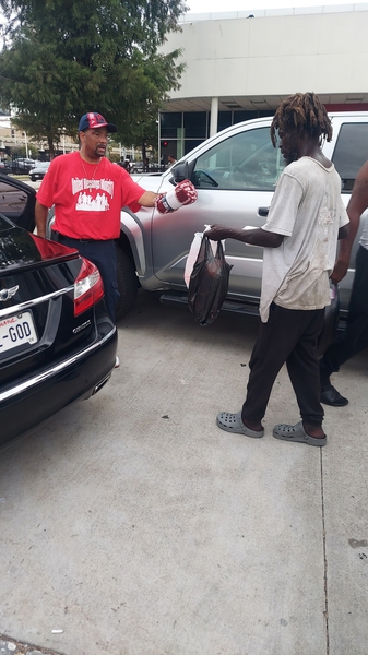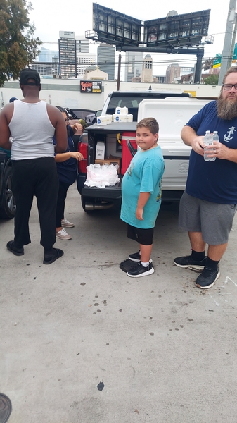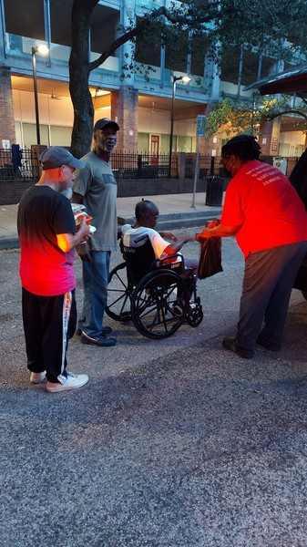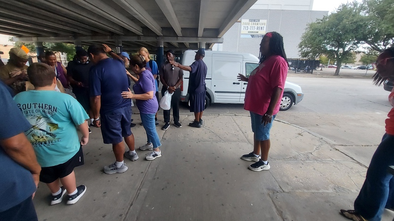 July 14, 2023 The Circle of Love Community was ready to see us as we provided ice cold water in 100 degree Houston heat. We blessed them with a hot dog, several bags of chips, bananas, hand-picked fresh cucumbers, plenty of snacks, love, hugs and prayers.