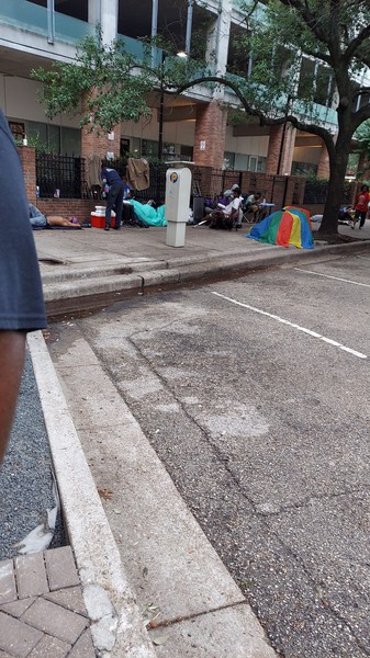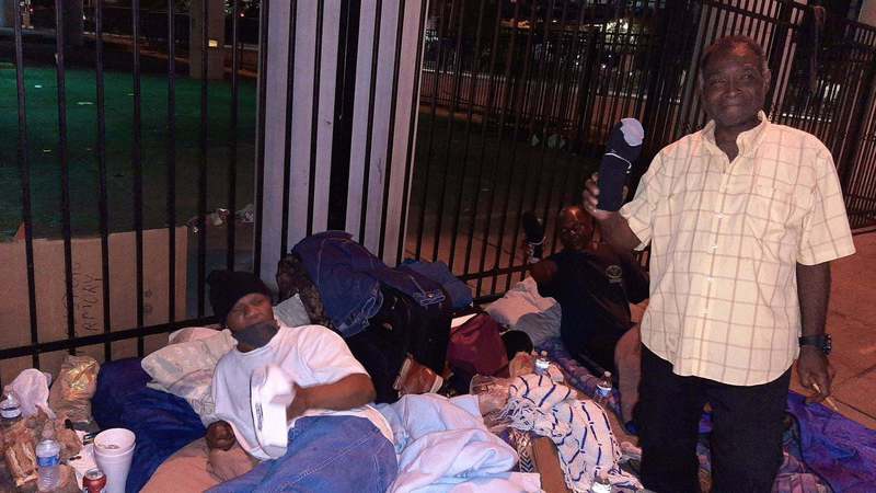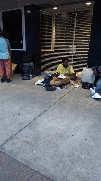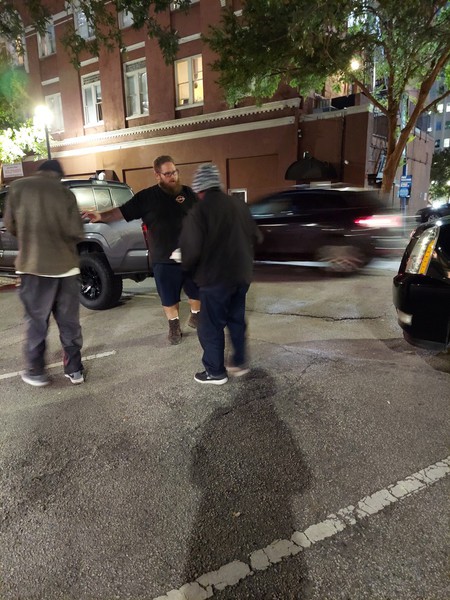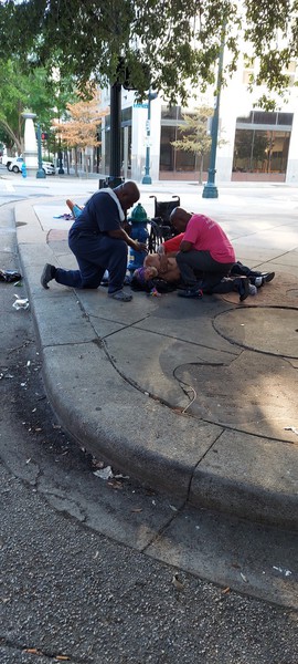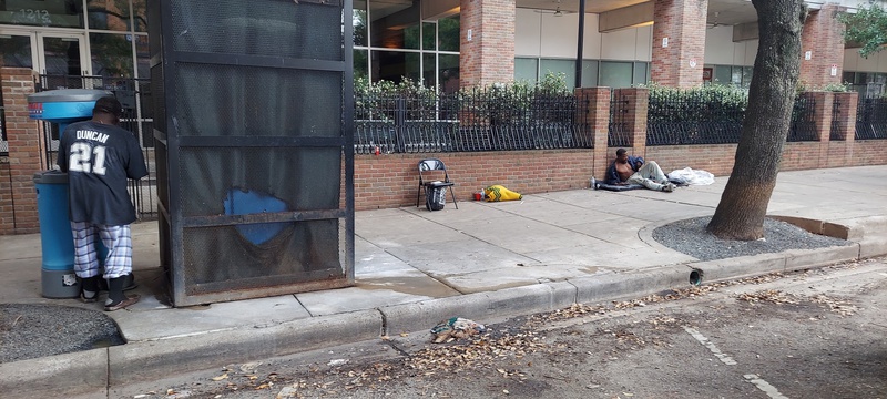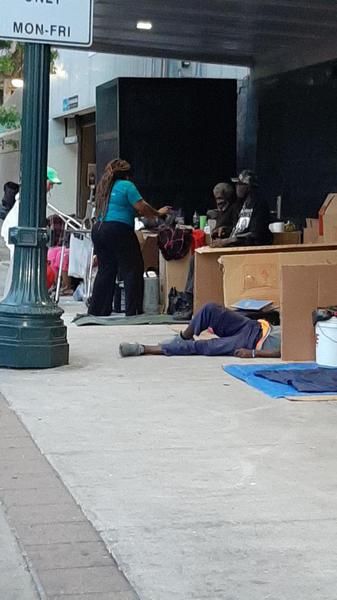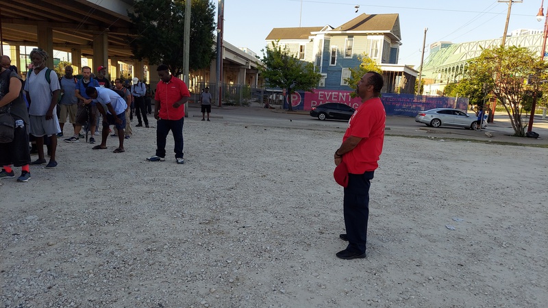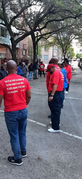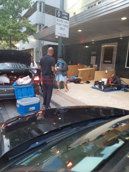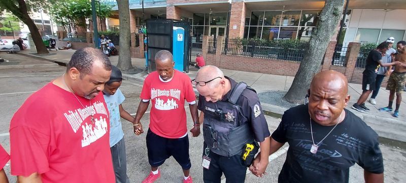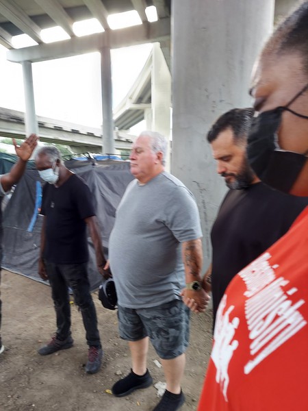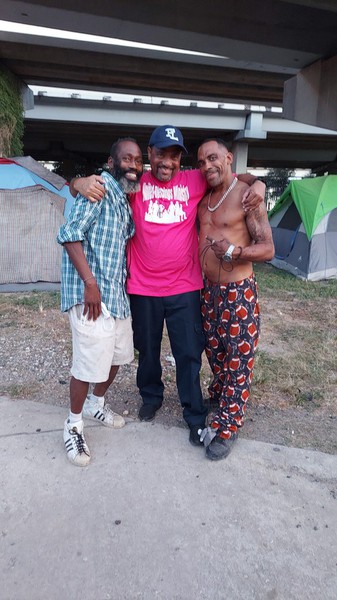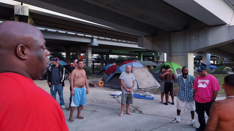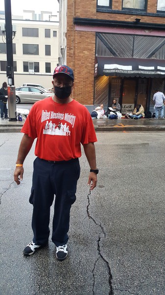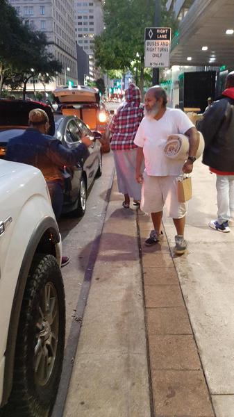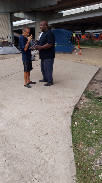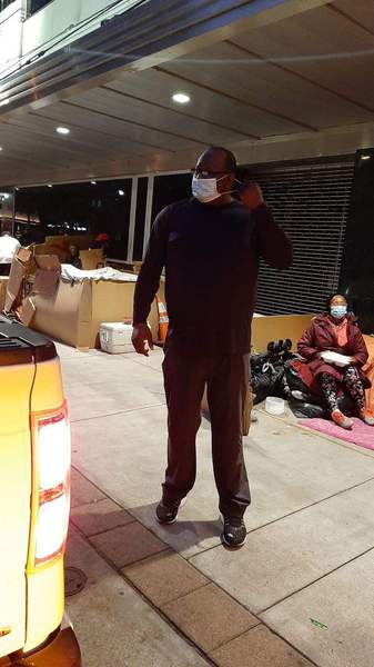 Rev. Gregory Williams ministering to the homeless downtown - March 21, 2020 - Downtown Houston