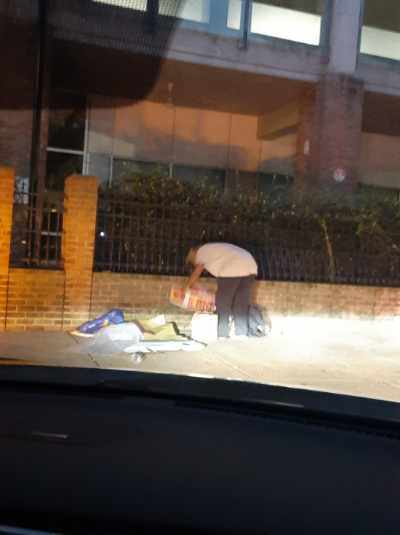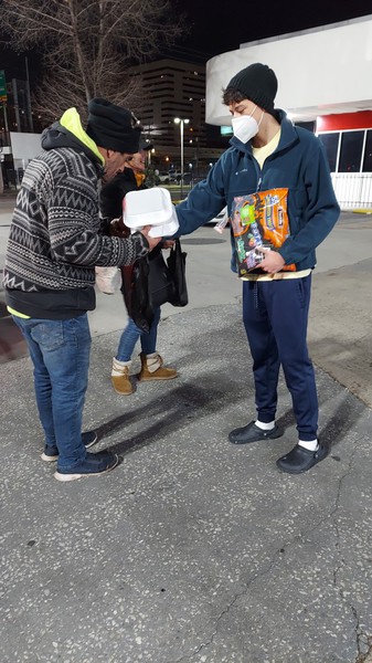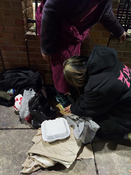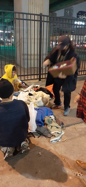 November 12, 2021 Providing homemade lasagne dinner, clothing, toiletries and prayer.
