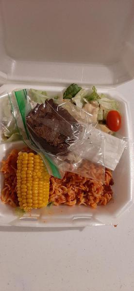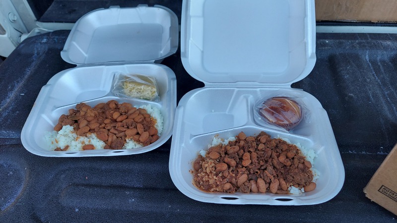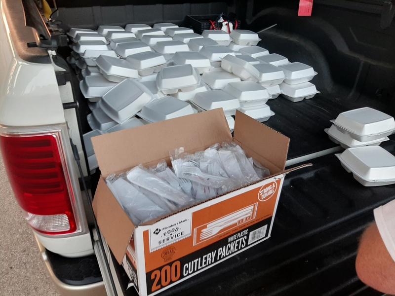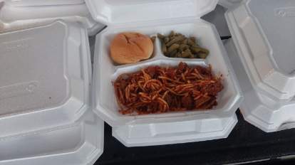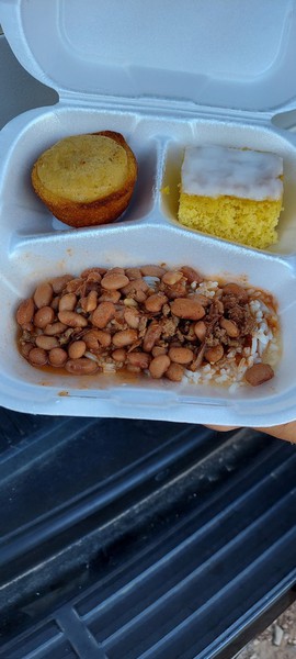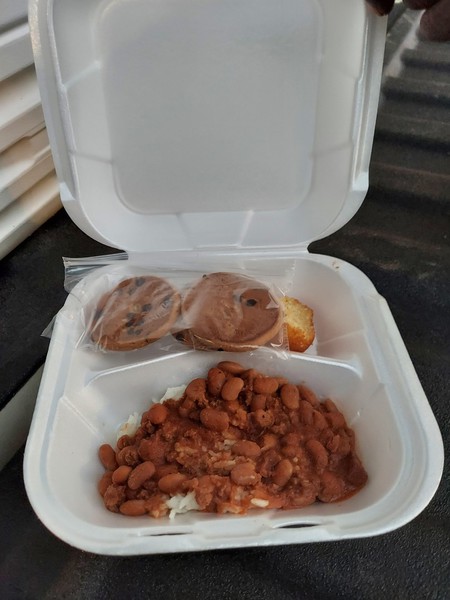 July 23, 2021 - Homemade BBQ ribs, brisket, links, baked beans with beef, green beans, snack, beverage, love and prayers.  Added a new location to our circle of love which was truly a blessing.
