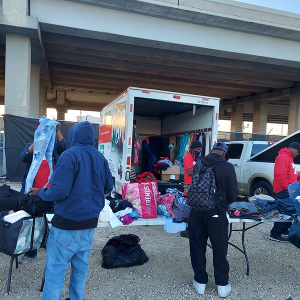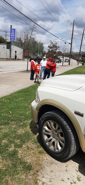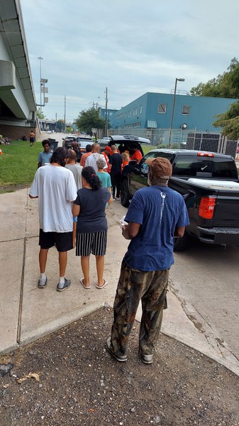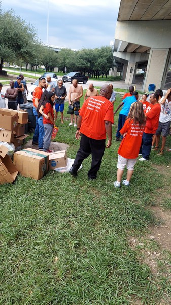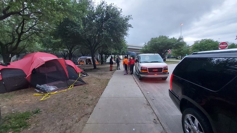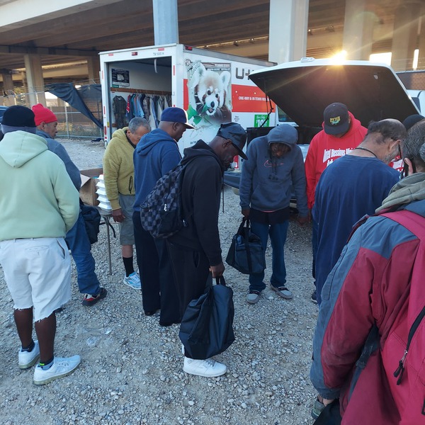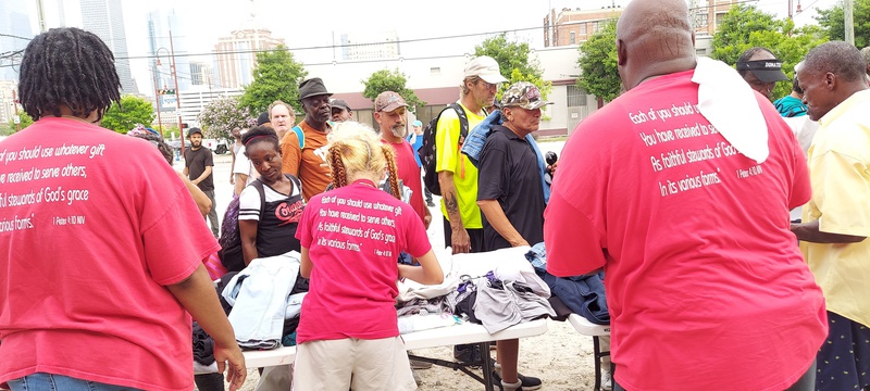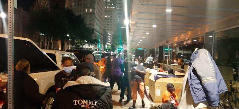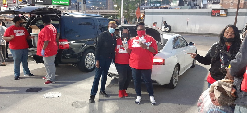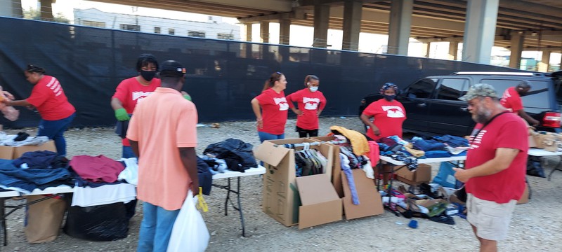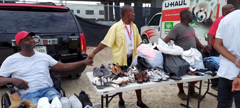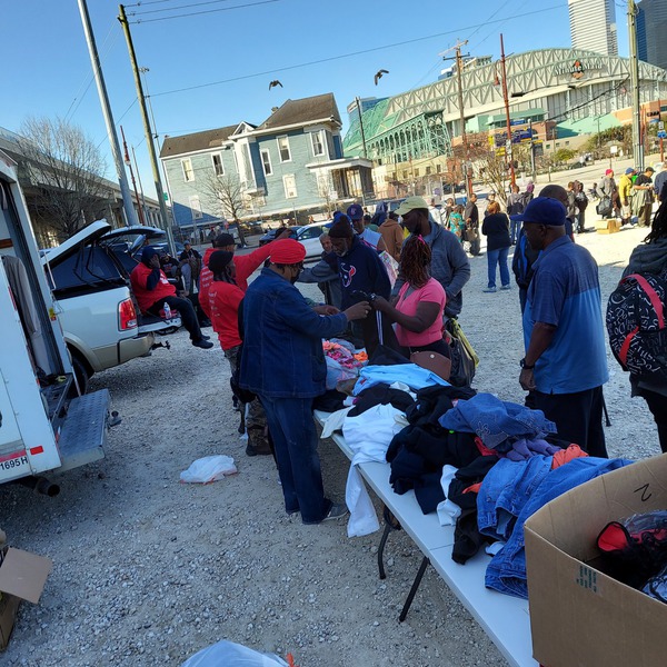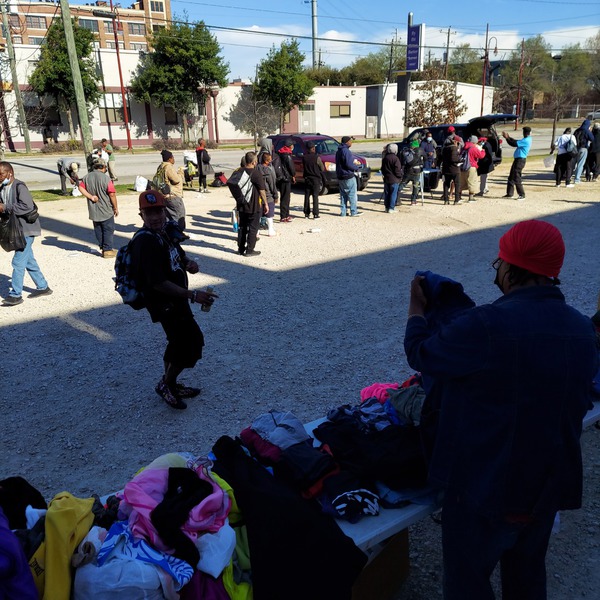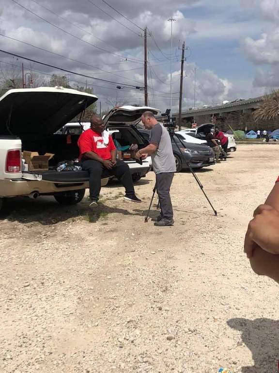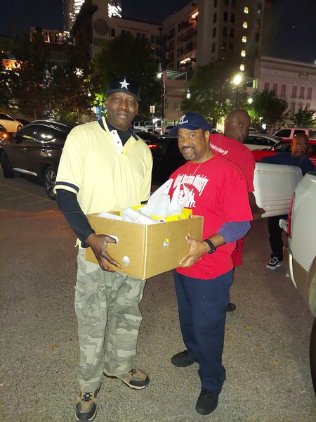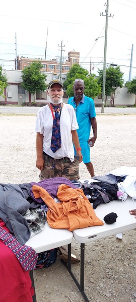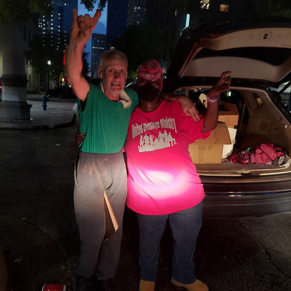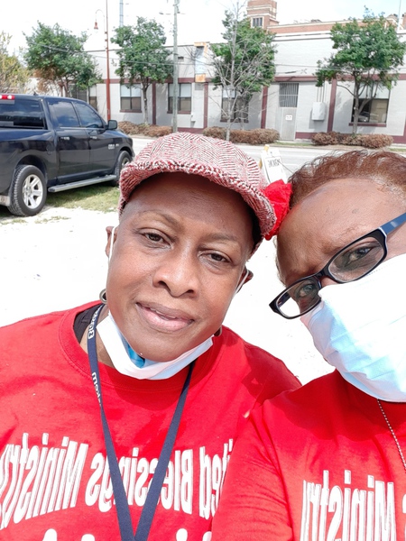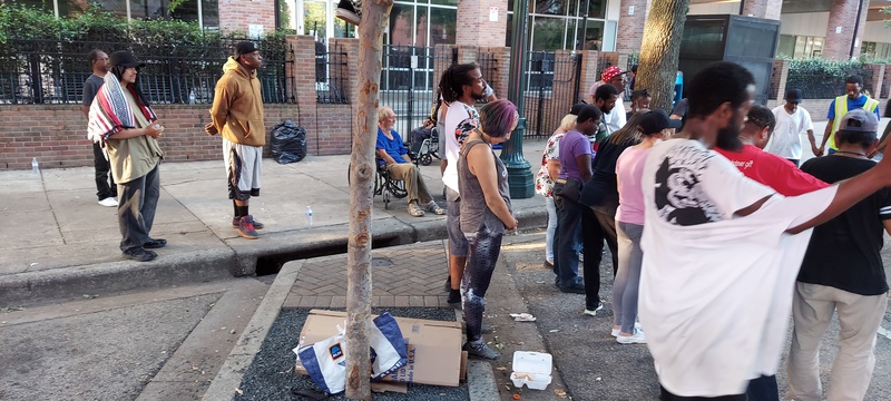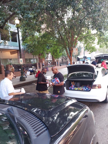 March 13, 2021 - Clothing and Food Drive Downtown Houston providing homemade meatloaf lunch to many.  God blessed many other ministeries to be on the same corner at the same time providing food and the Homeless Depot was providing mobile showers.  Felt just like a festival - True Ministry in Action!  Hallelejuiah.