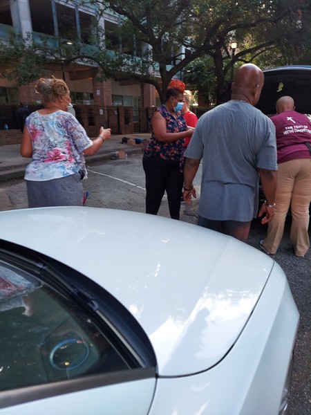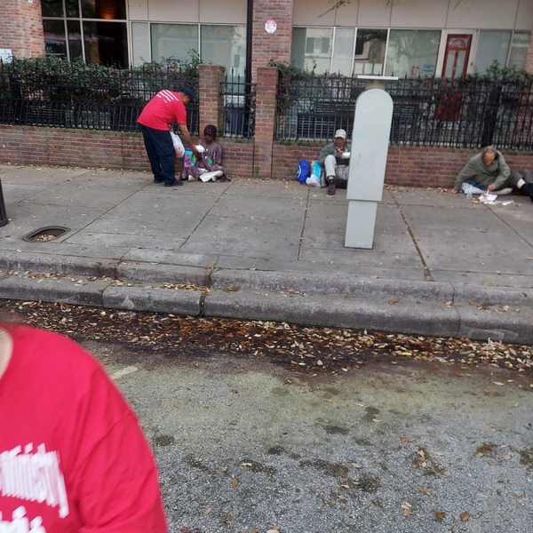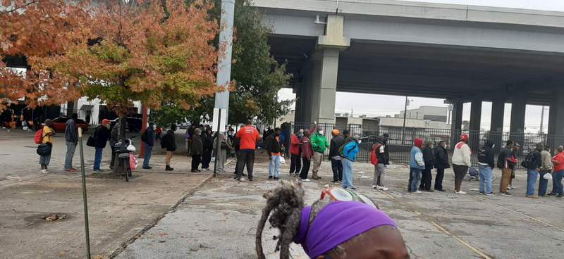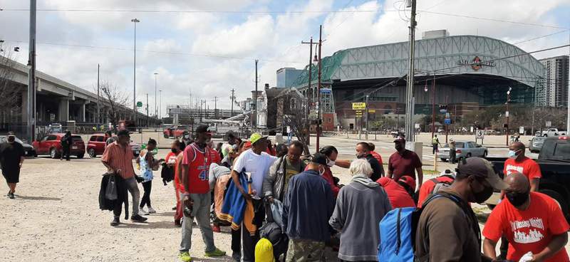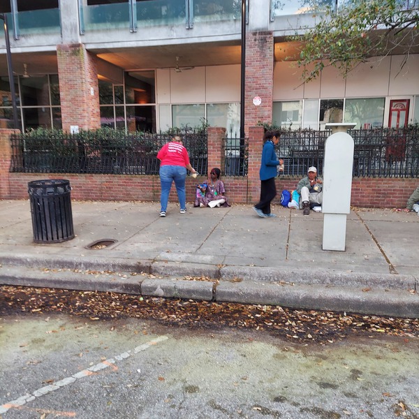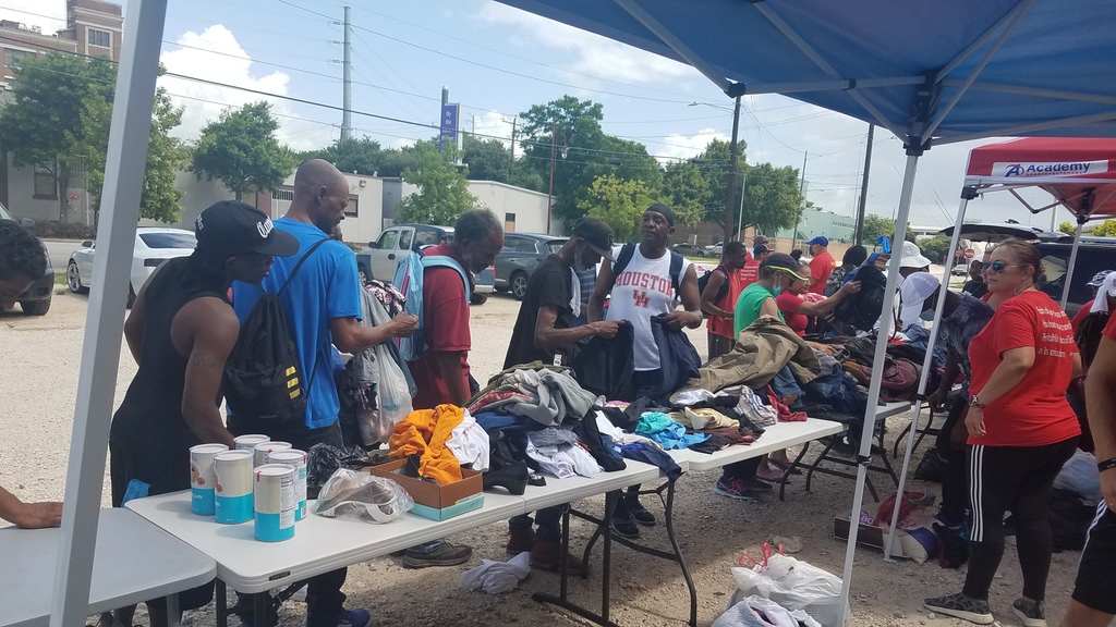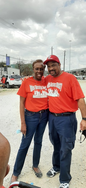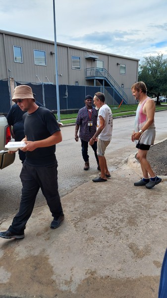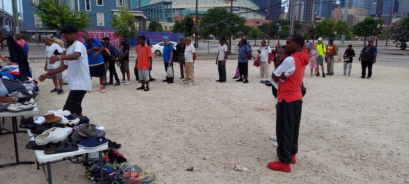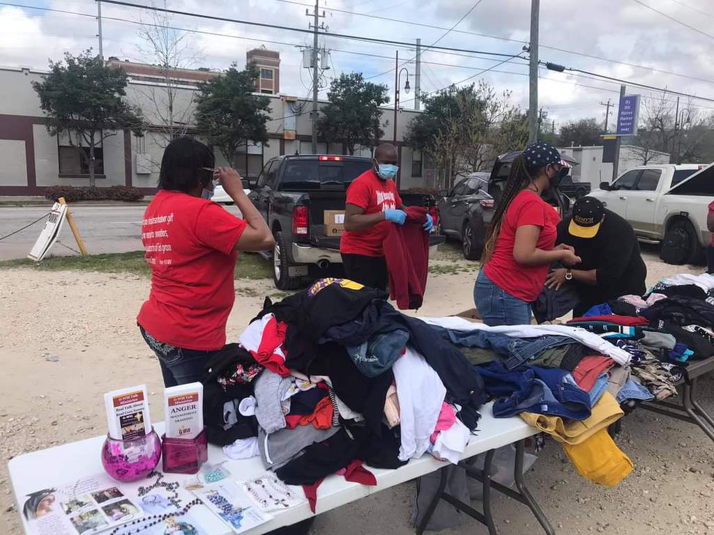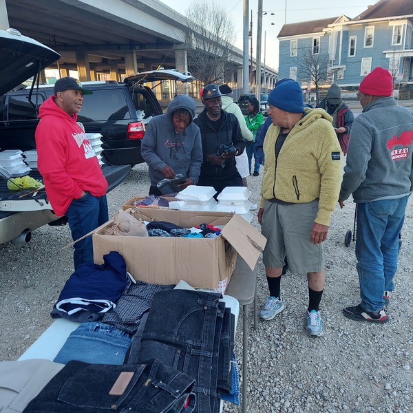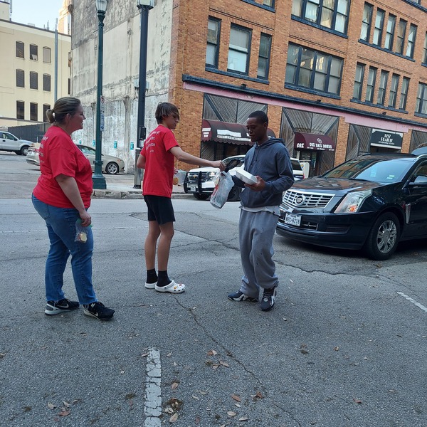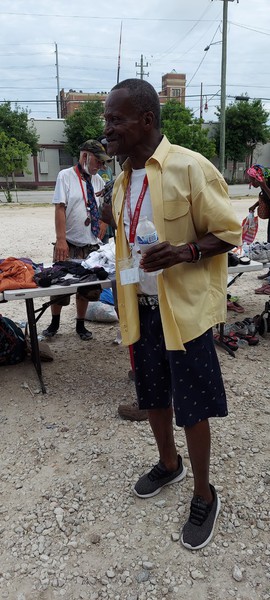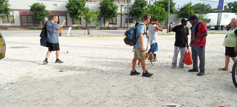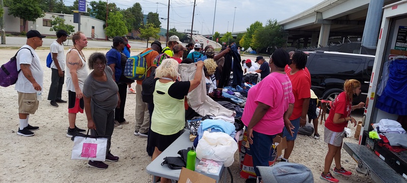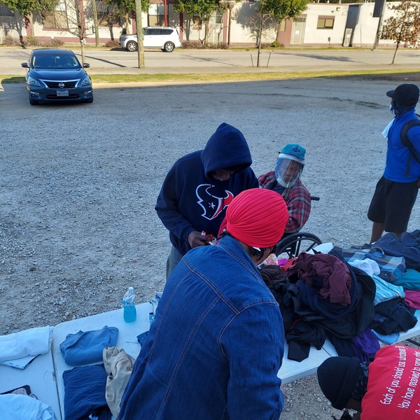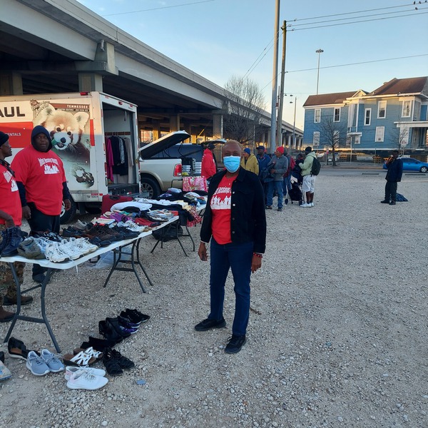 March 13, 2021 - Clothing and Food Drive Downtown Houston providing homemade meatloaf lunch to many.  God blessed many other ministeries to be on the same corner at the same time providing food and the Homeless Depot was providing mobile showers.  Felt just like a festival - True Ministry in Action!  Hallelejuiah.