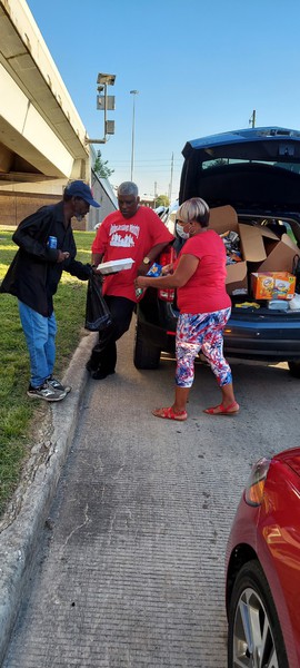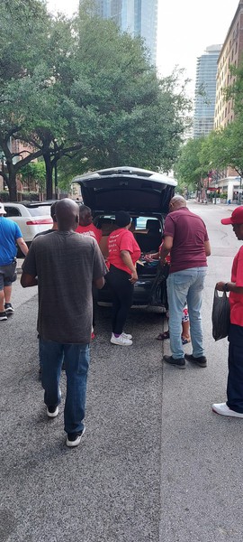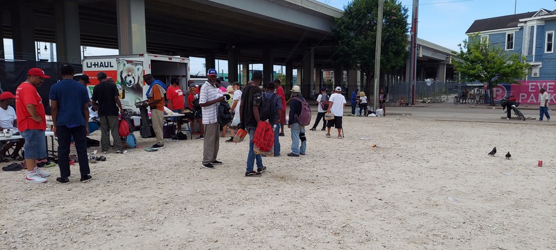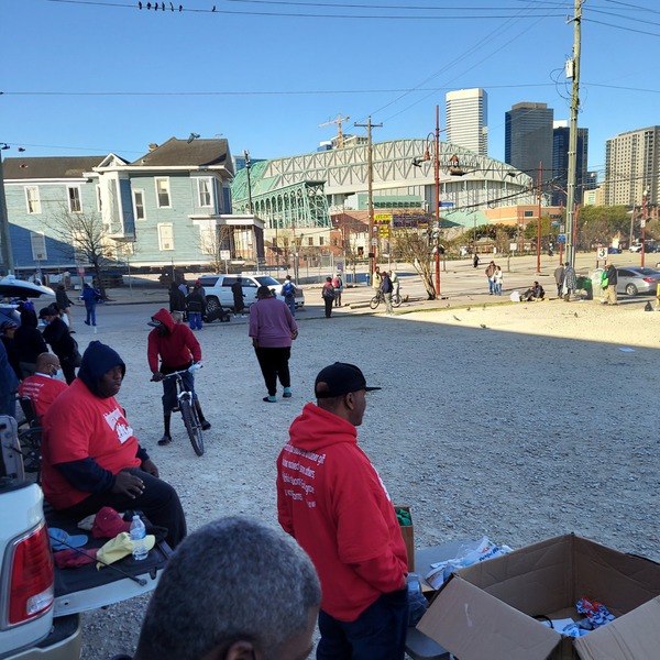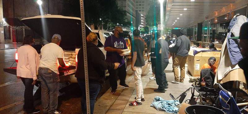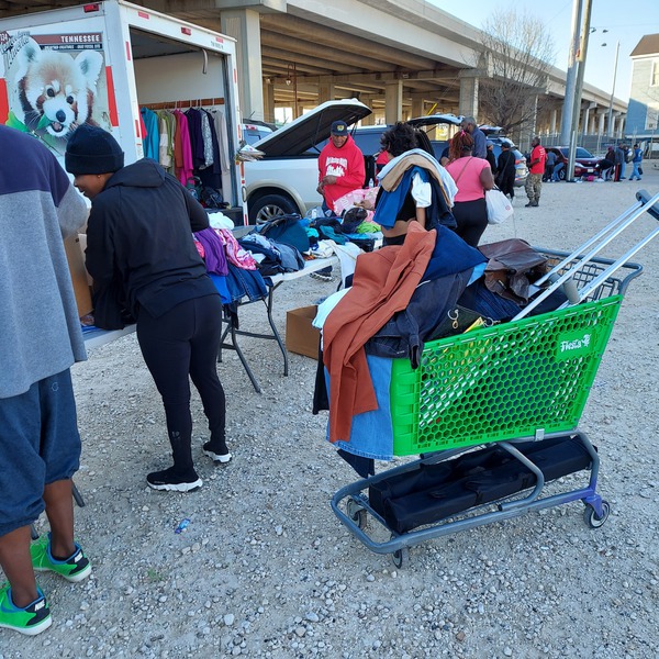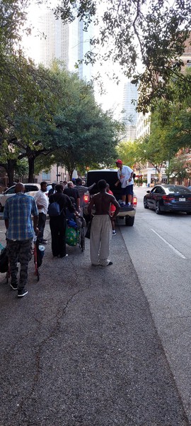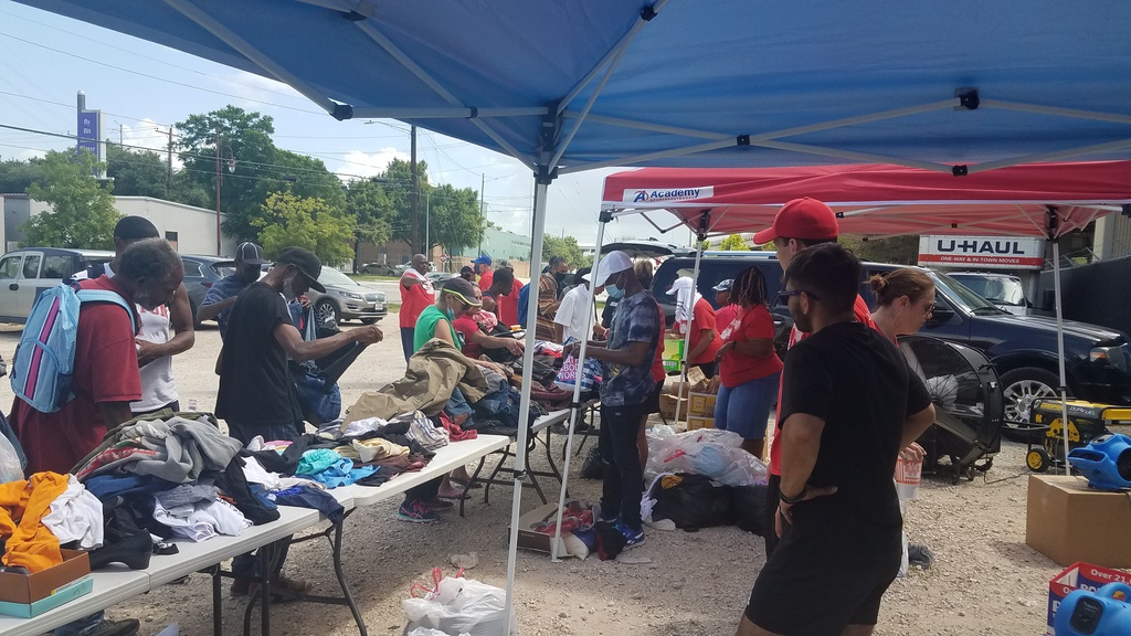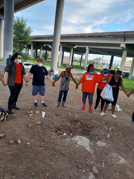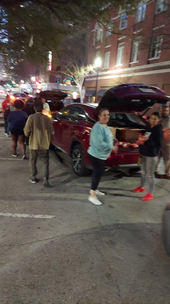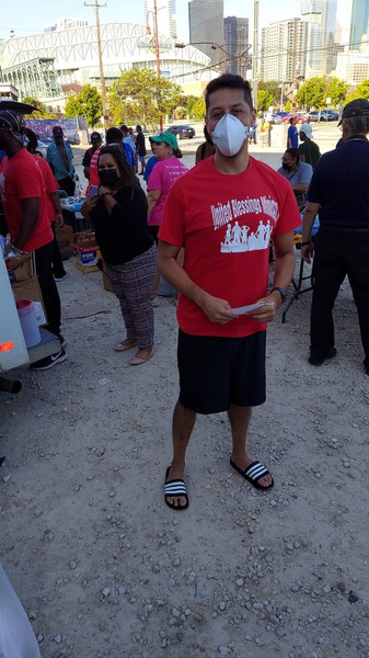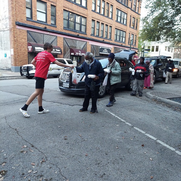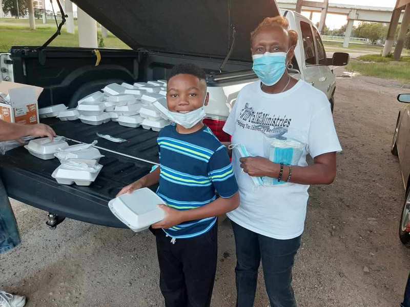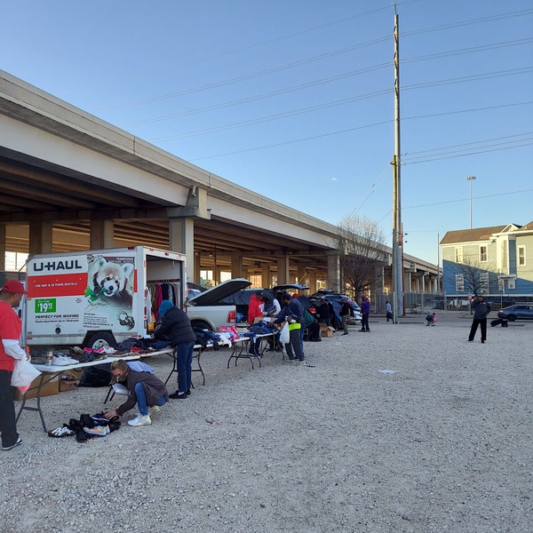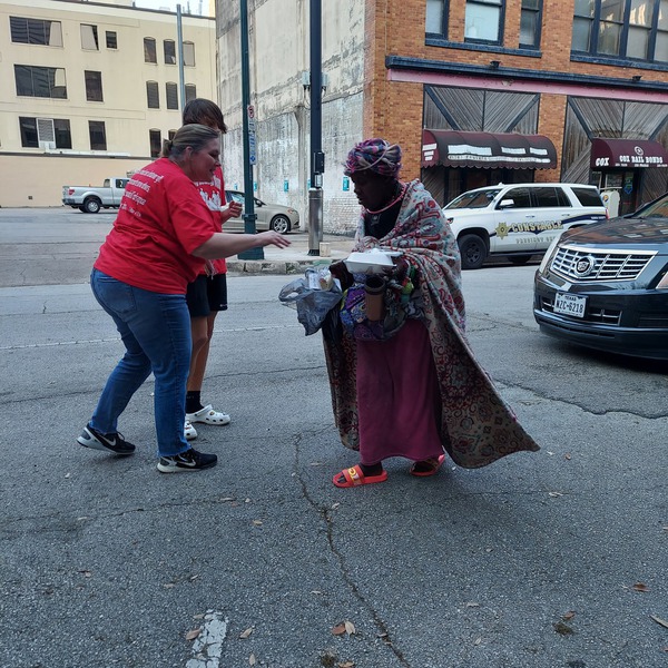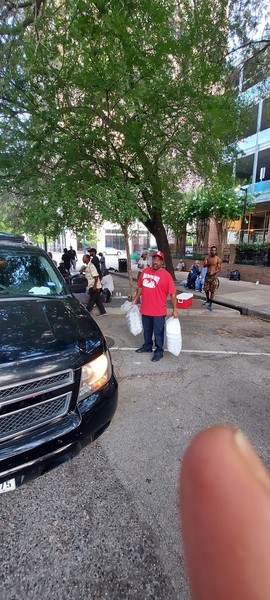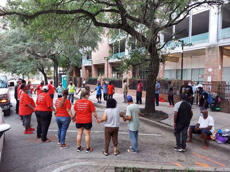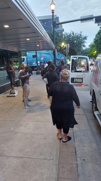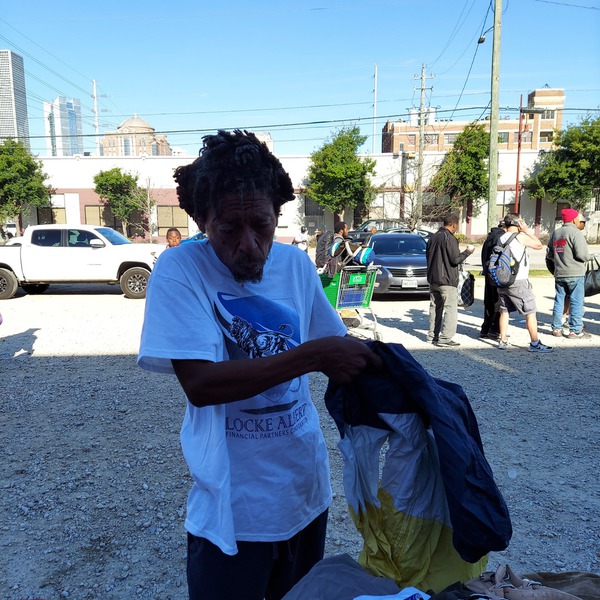 March 13, 2021 - Clothing and Food Drive Downtown Houston providing homemade meatloaf lunch to many.  God blessed many other ministeries to be on the same corner at the same time providing food and the Homeless Depot was providing mobile showers.  Felt just like a festival - True Ministry in Action!  Hallelejuiah.