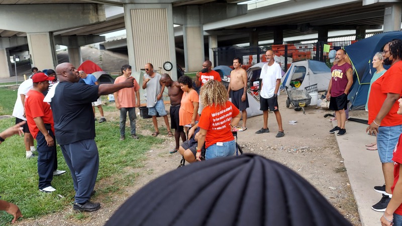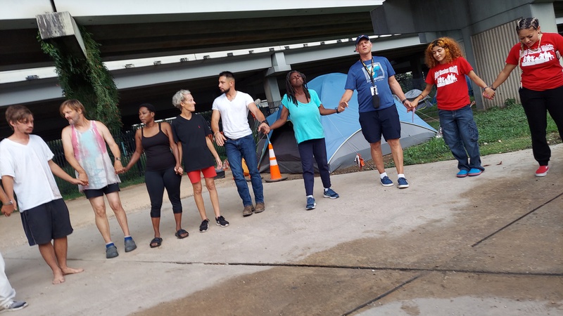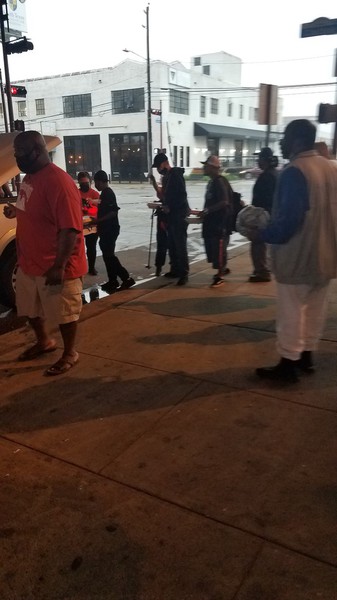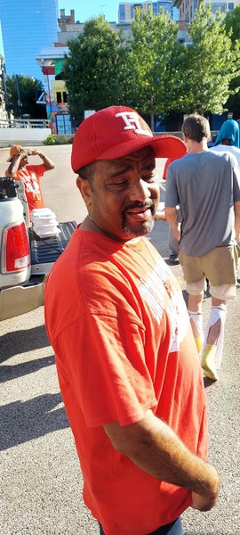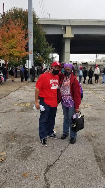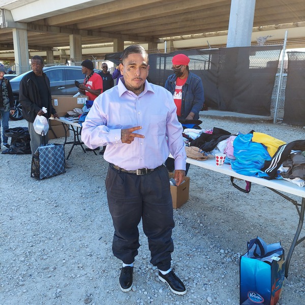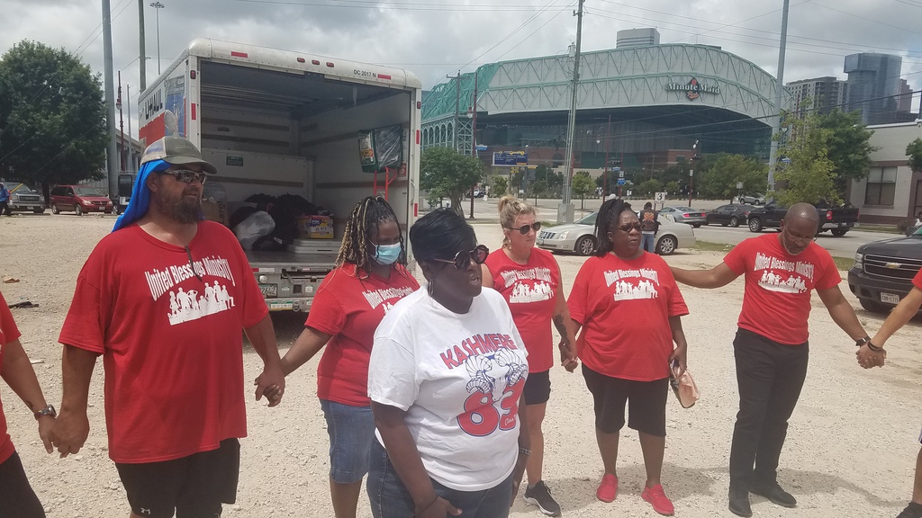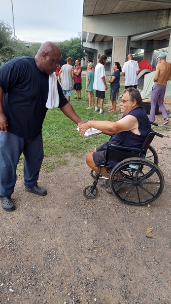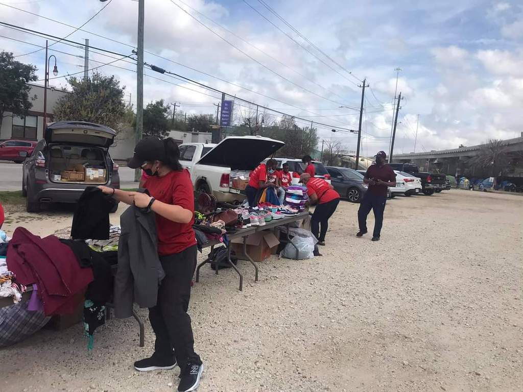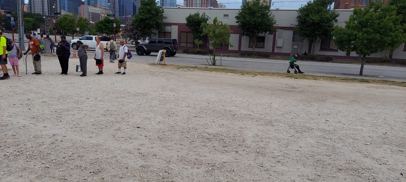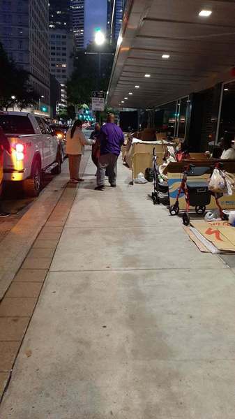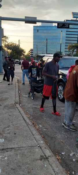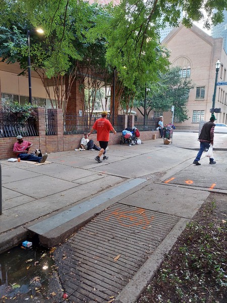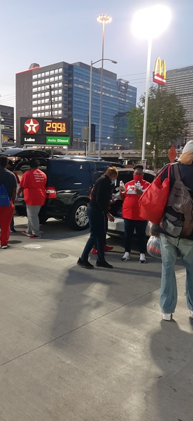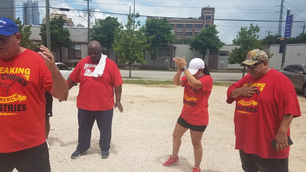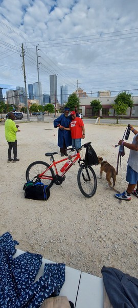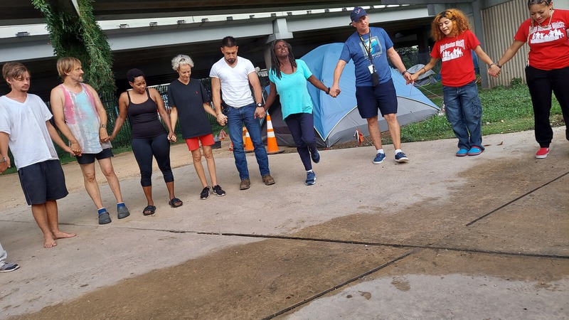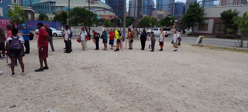 March 13, 2021 - Clothing and Food Drive Downtown Houston providing homemade meatloaf lunch to many.  God blessed many other ministeries to be on the same corner at the same time providing food and the Homeless Depot was providing mobile showers.  Felt just like a festival - True Ministry in Action!  Hallelejuiah.