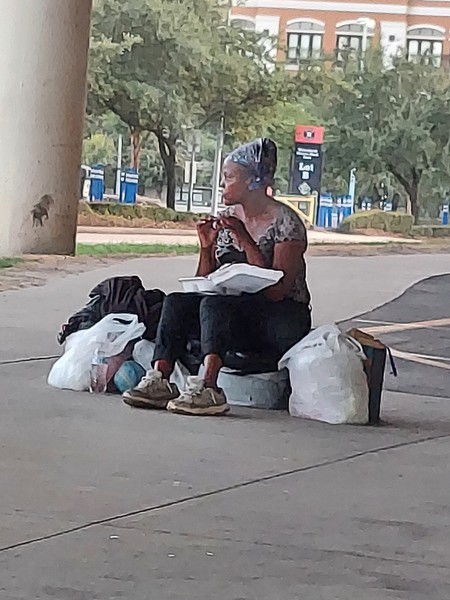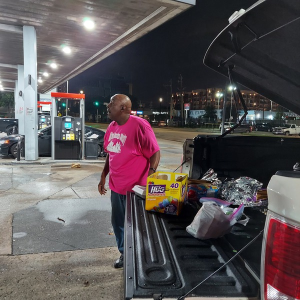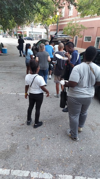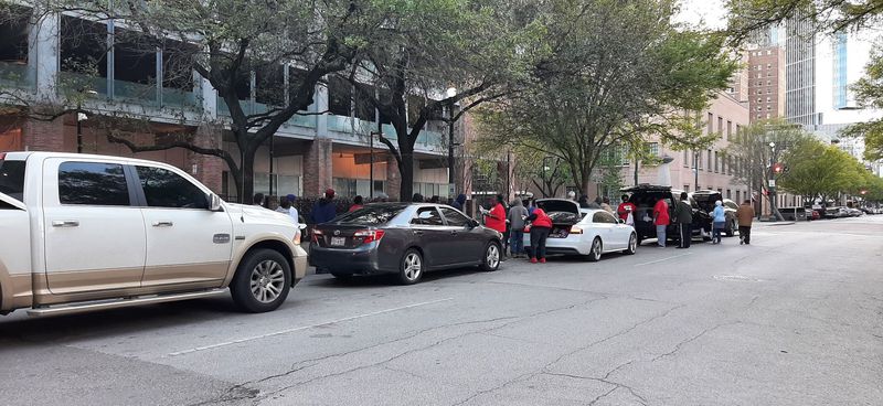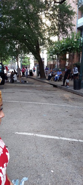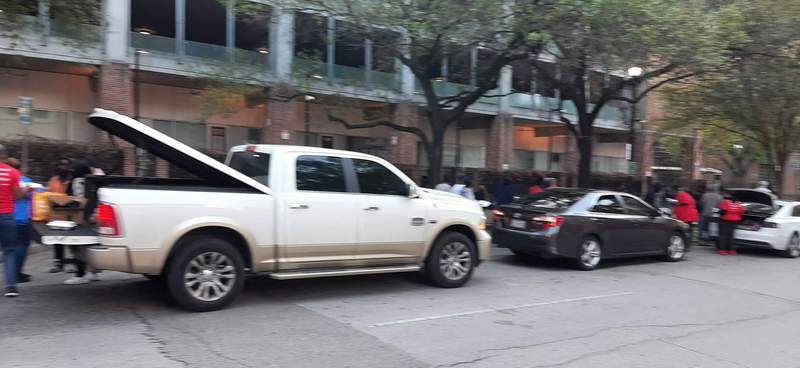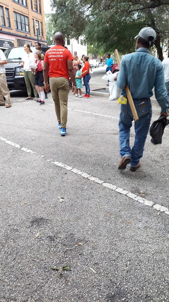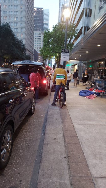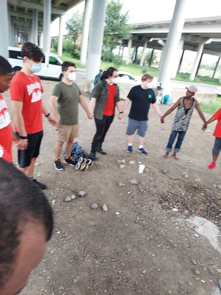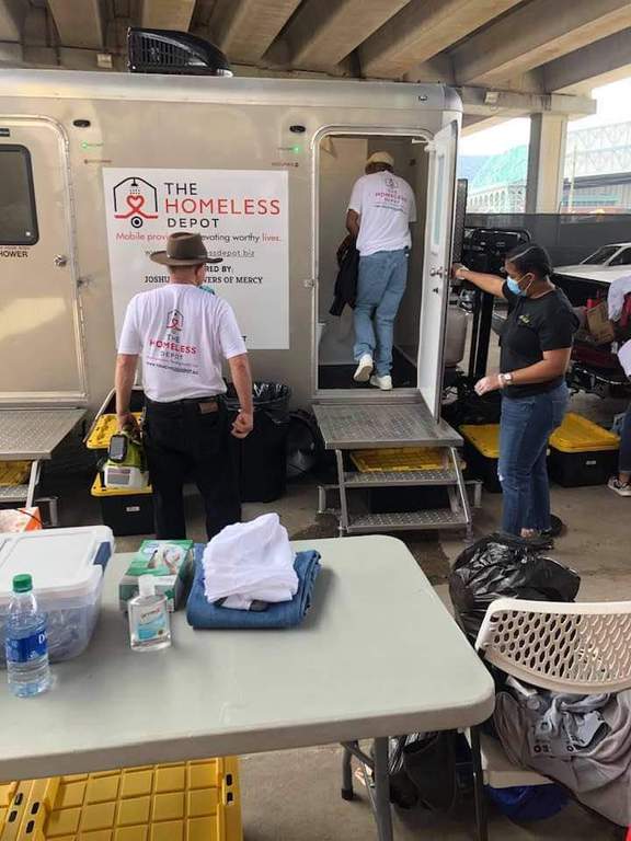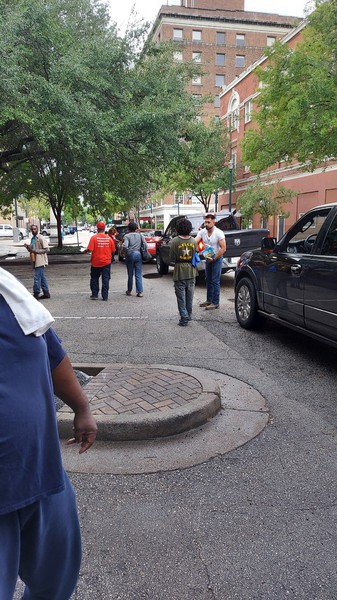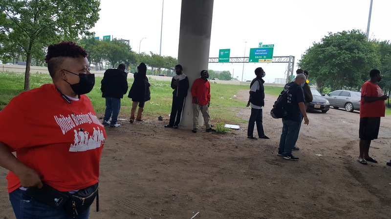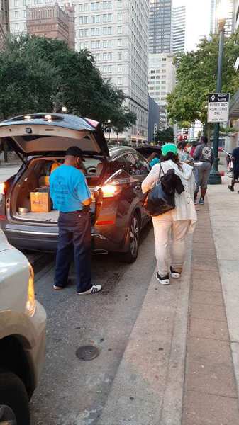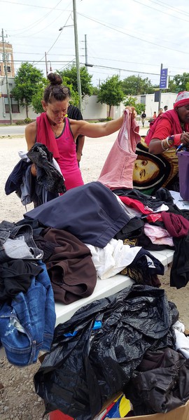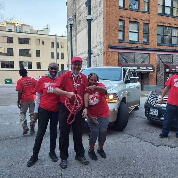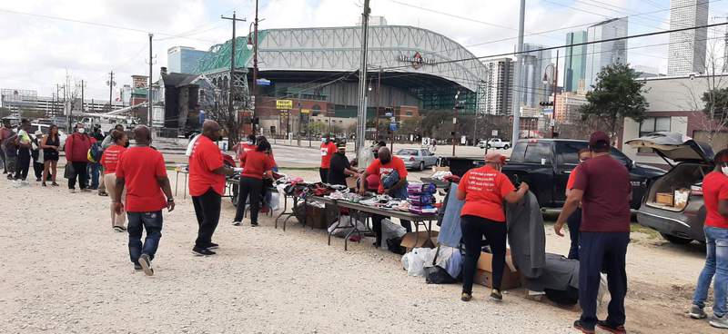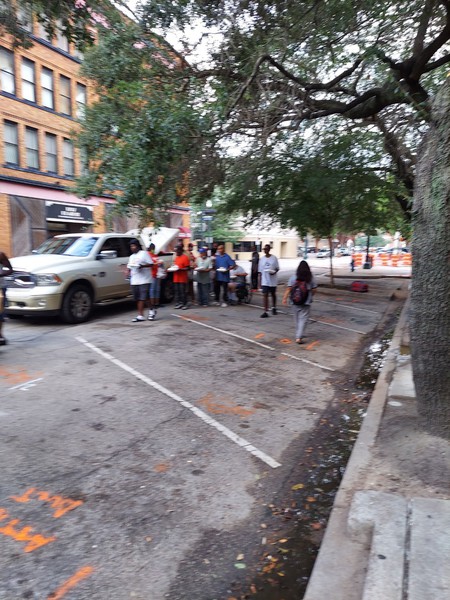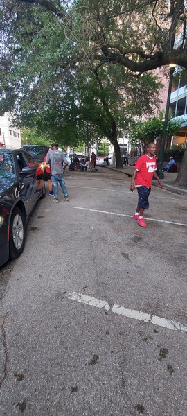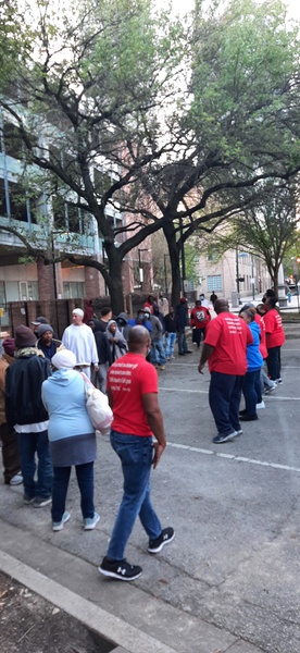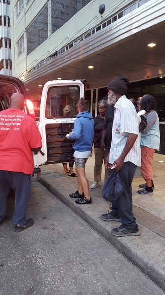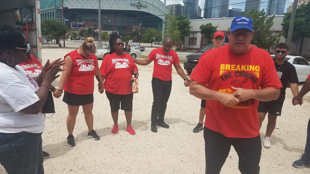 March 13, 2021 - Clothing and Food Drive Downtown Houston providing homemade meatloaf lunch to many.  God blessed many other ministeries to be on the same corner at the same time providing food and the Homeless Depot was providing mobile showers.  Felt just like a festival - True Ministry in Action!  Hallelejuiah.
