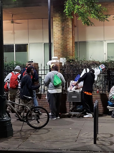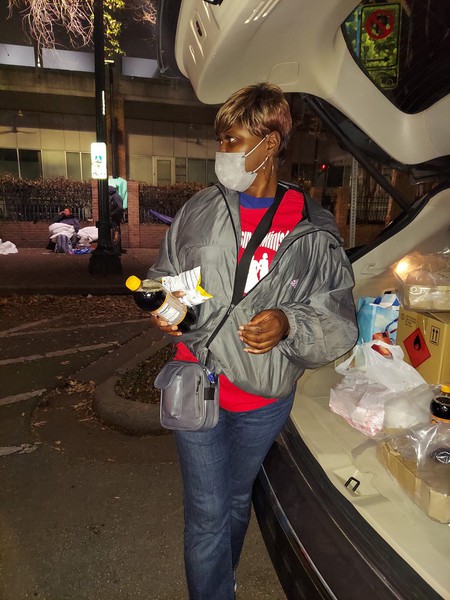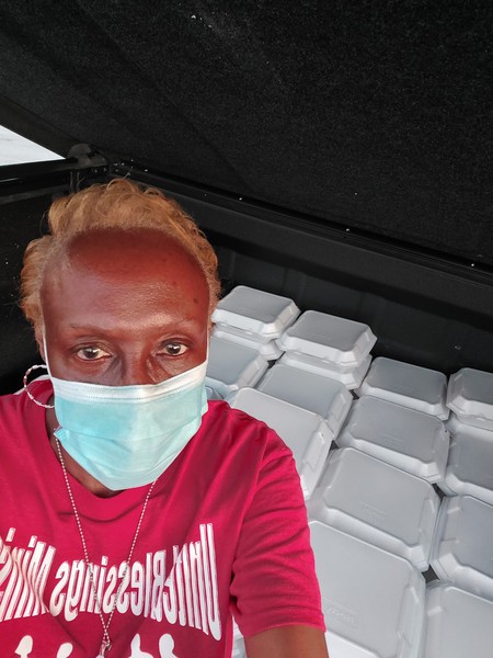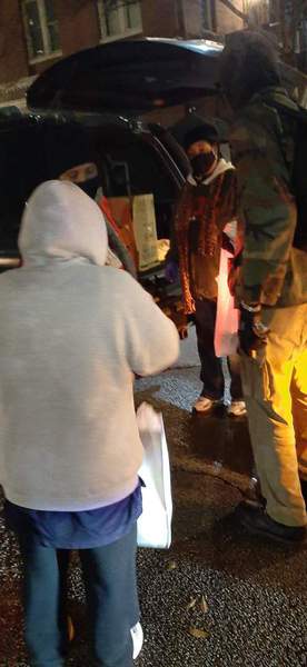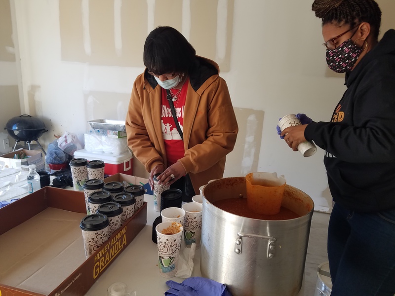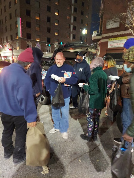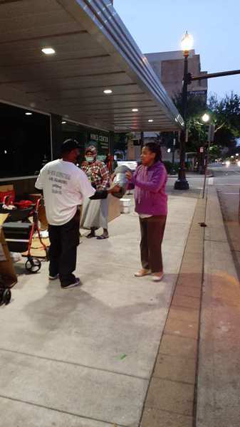 January 22, 2021 - Blessing the community with Homemade Chicken Stew, Cornbread, Dessert, Beverage and plenty of love and prayer.  God blessed us with one who was homeless and is now ministering with us to her friends on the streets.  They were so happy to see her. Thanks Queen!