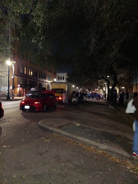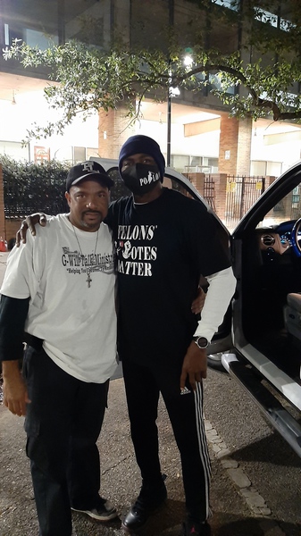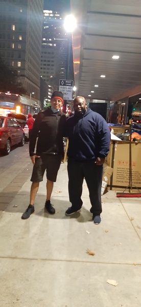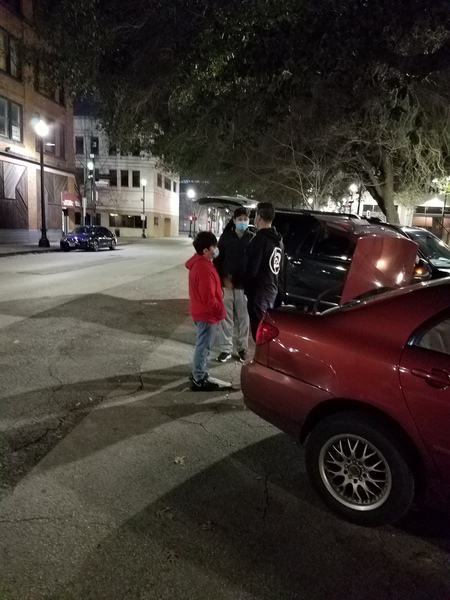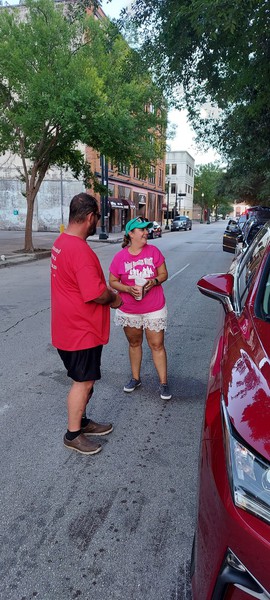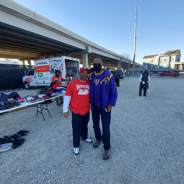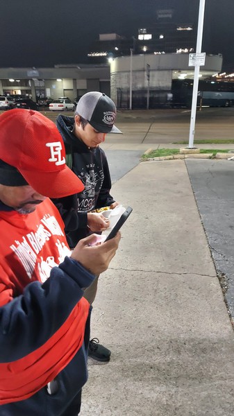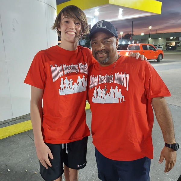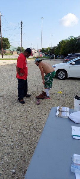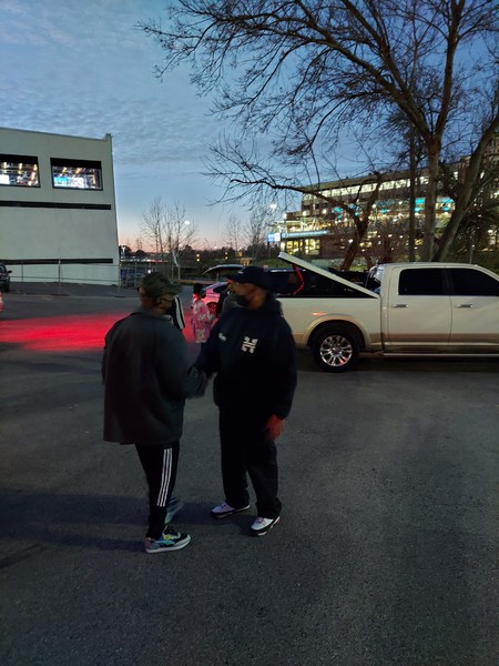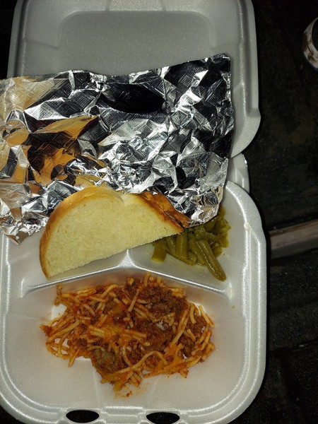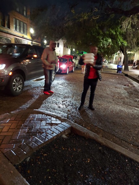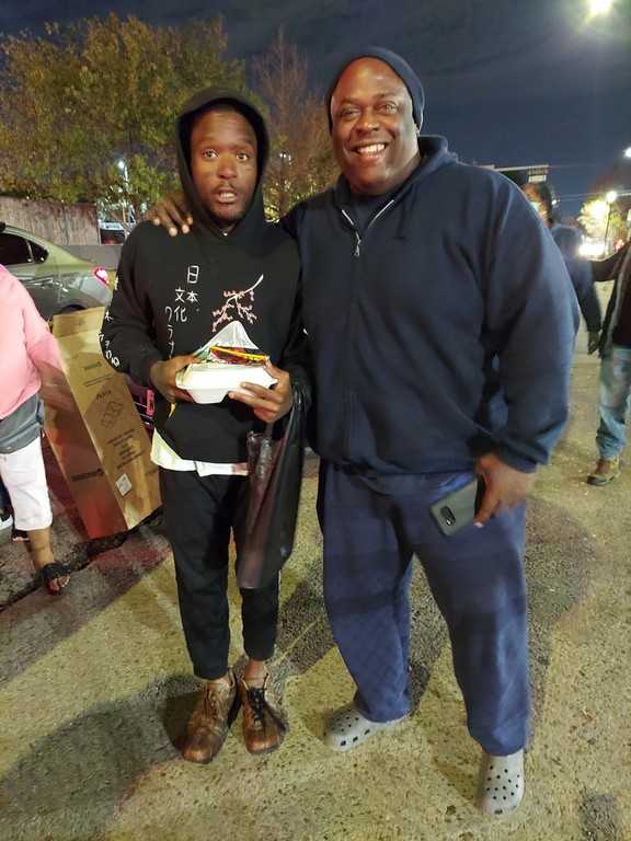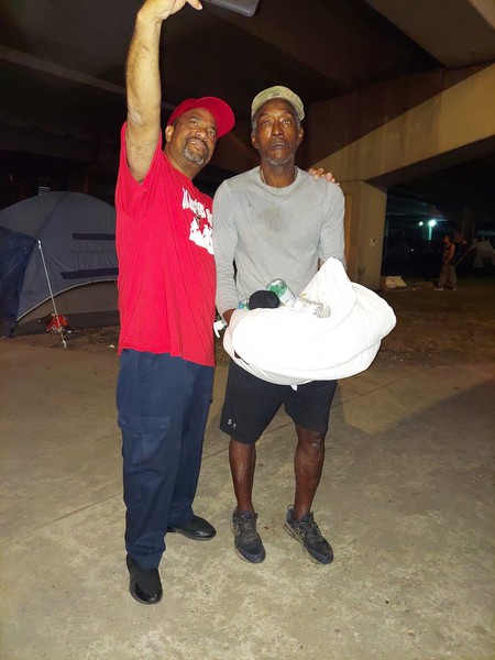 February 18, 2022 we blessed the community with homemade spaghetti dinners provided by our church family in Navasota.  We provided hoodies and shoes this time along with our regular items.  There were so many out tonight.  One of the gentlemen downtown was so touched by our consistent love for the community that he wanted to take a picture with Pastor Greg to post on his Instagram with the caption "God is Good!".   He made a great connection and bonded with Pastor Greg.  Oh yes, God is Good all the time!