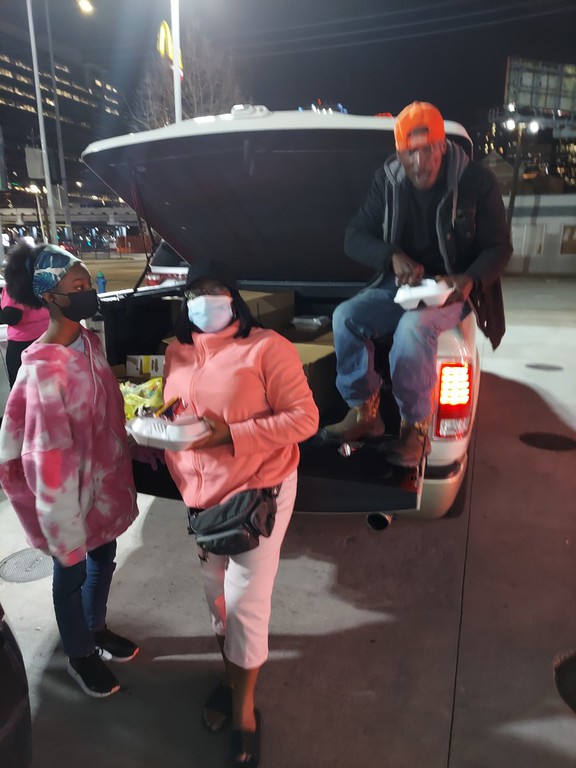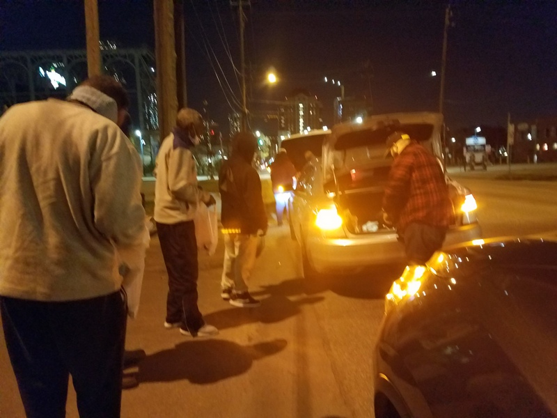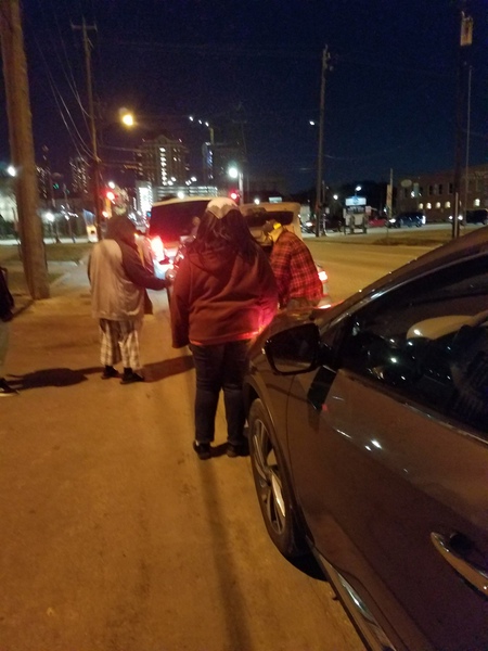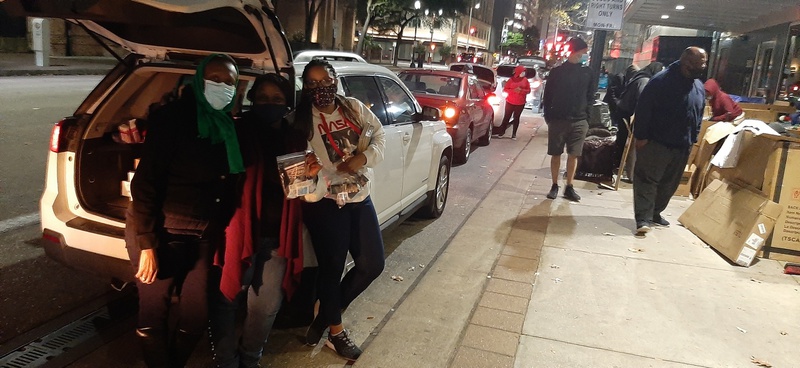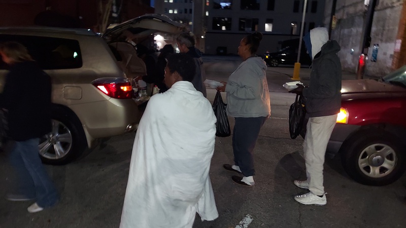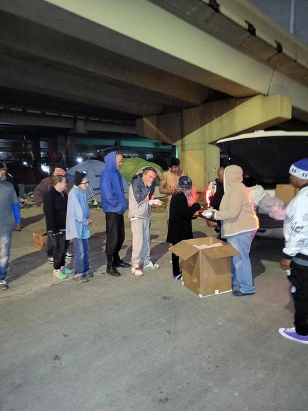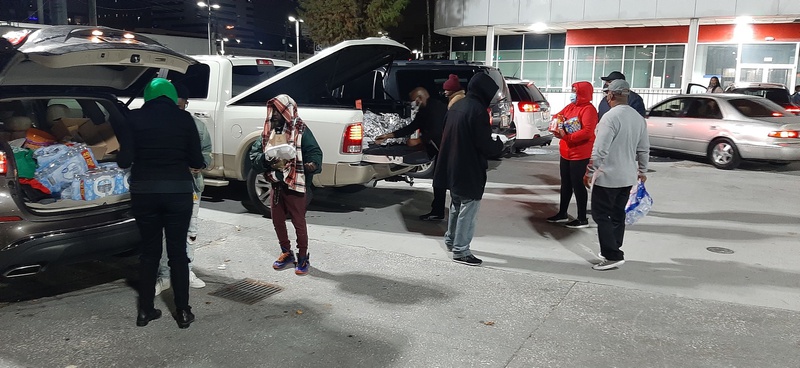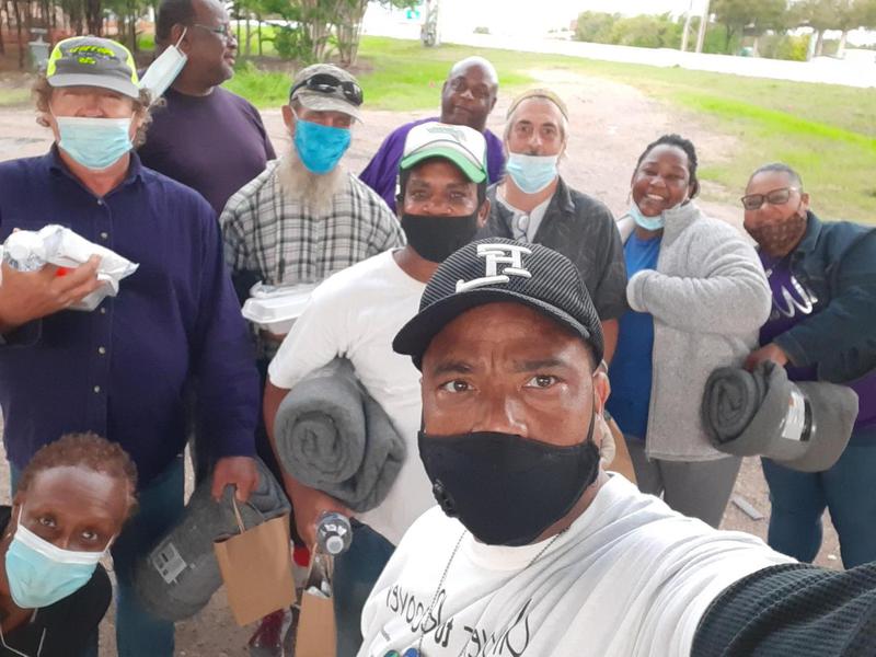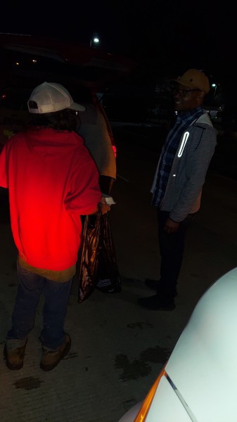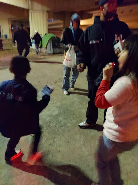 October 30, 2020 - Provided chicken dinner & drinks, blankets, toiletrees, and met another couple  who we partnered with and delivered pizza and soda too!  Outreach team:  Pastor Greg, Scharlene, Big O, Wendy, Angel, Pastor Jones, Mr. & Mrs. Sandford, Quentin, Jacobi & his lady.