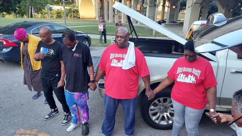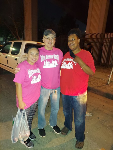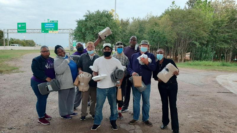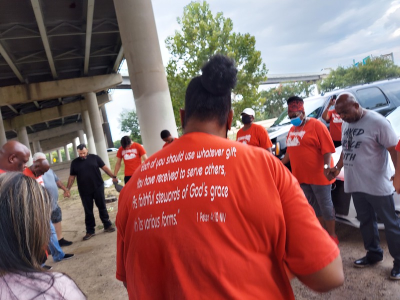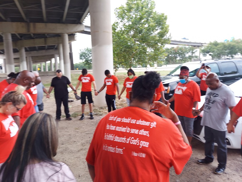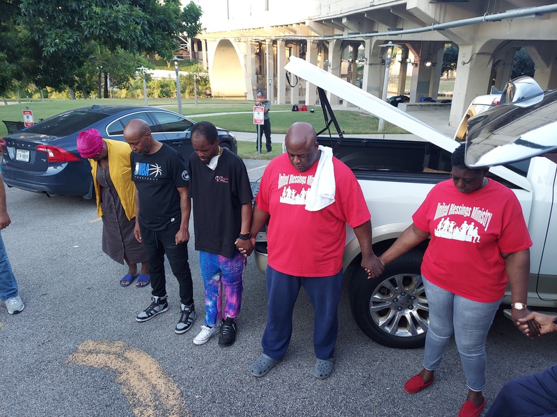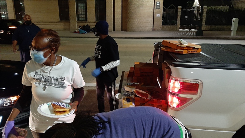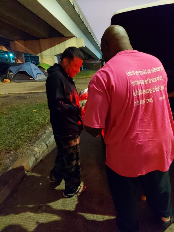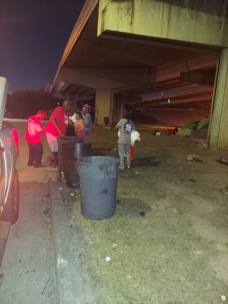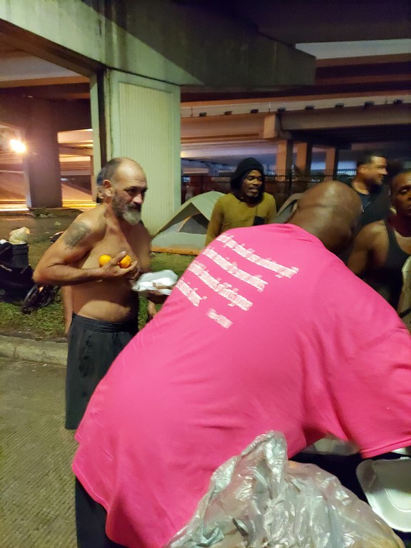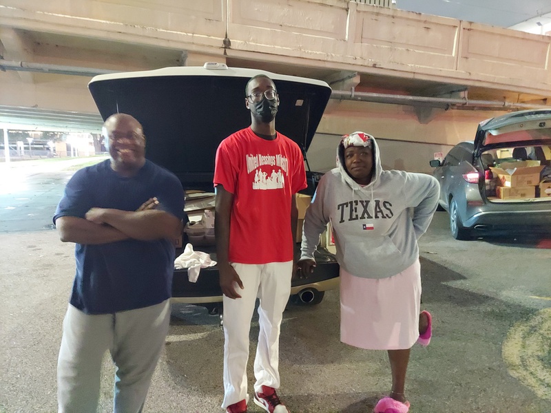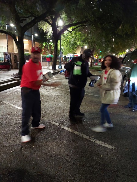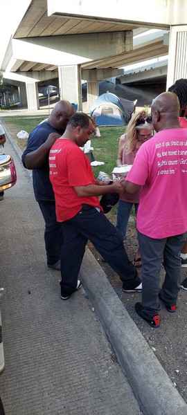 October 16, 2020 - Feeding the homeless homemade spaghetti dinner, provided warm blankets as the temperature dropped in Houston and prayed without ceasing.  Outreach team: Pastor Greg, Scharlene, Big O, Wendy, Apostle Boggas and Pastor Dee Boggas.