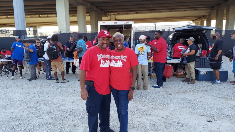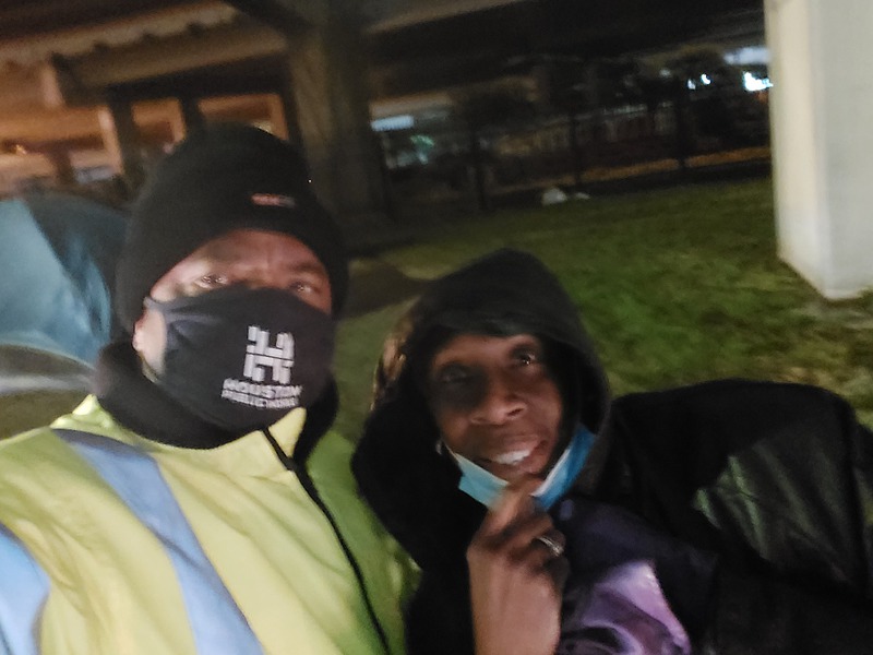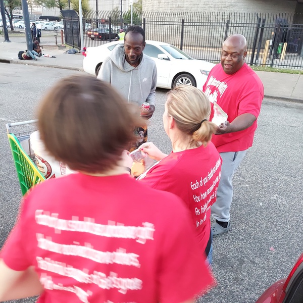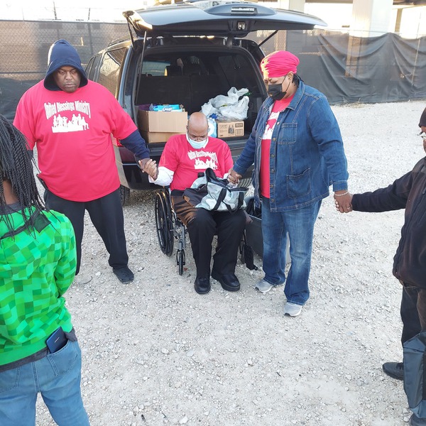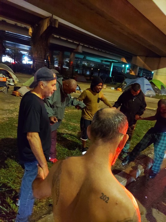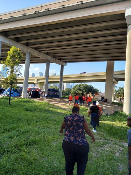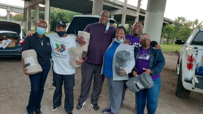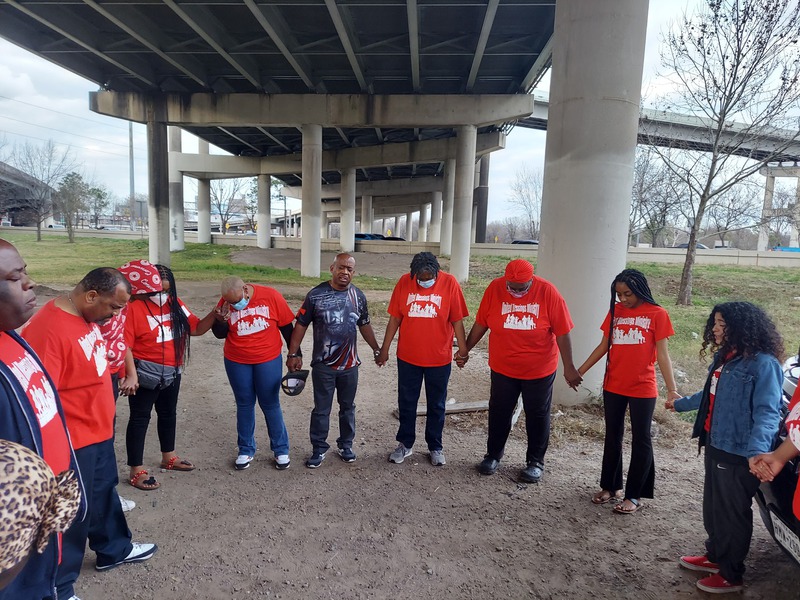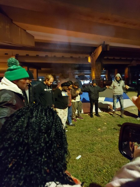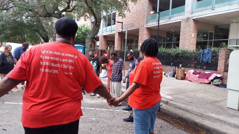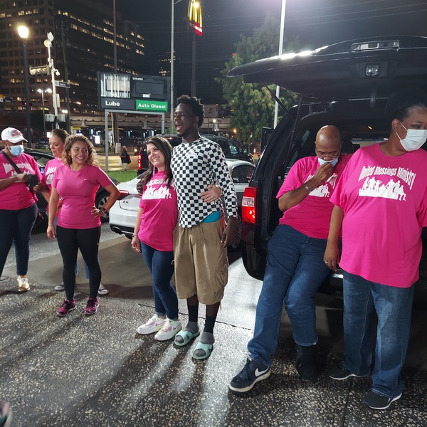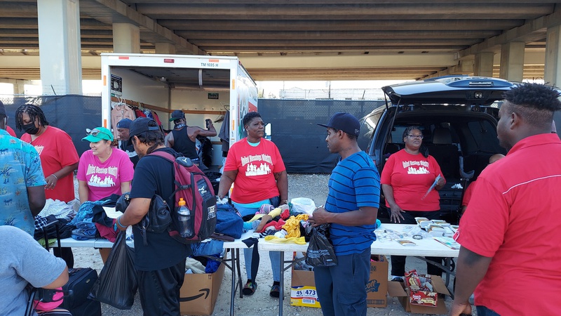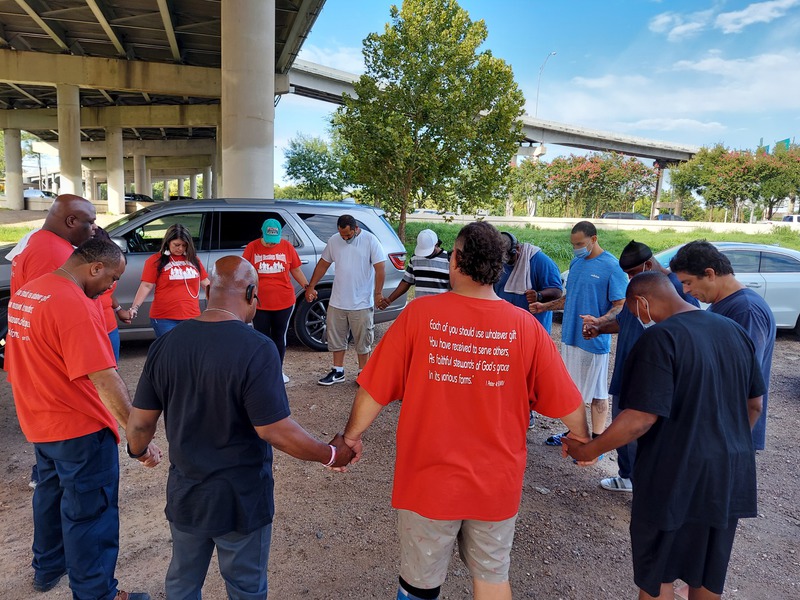 October 16, 2020 - Feeding the homeless homemade spaghetti dinner, provided warm blankets as the temperature dropped in Houston and prayed without ceasing.  Outreach team: Pastor Greg, Scharlene, Big O, Wendy, Apostle Boggas and Pastor Dee Boggas.