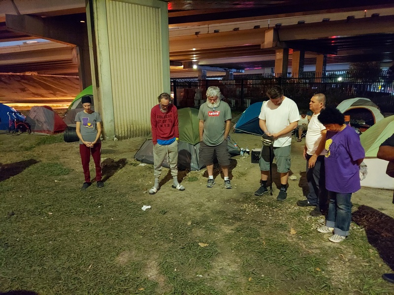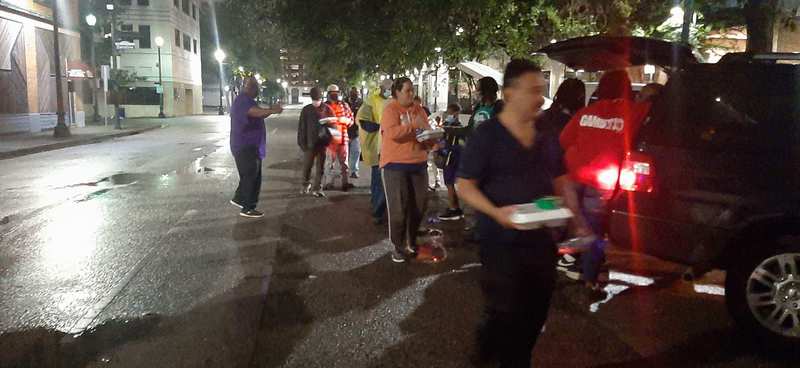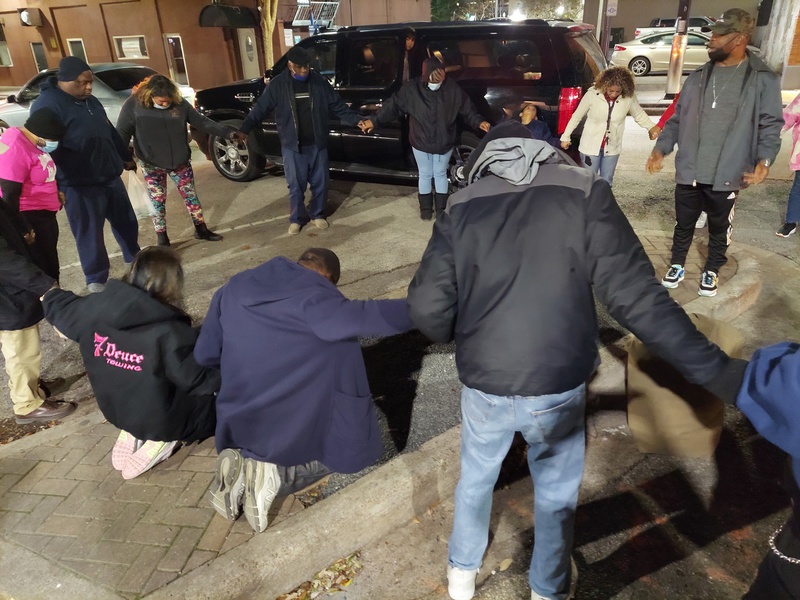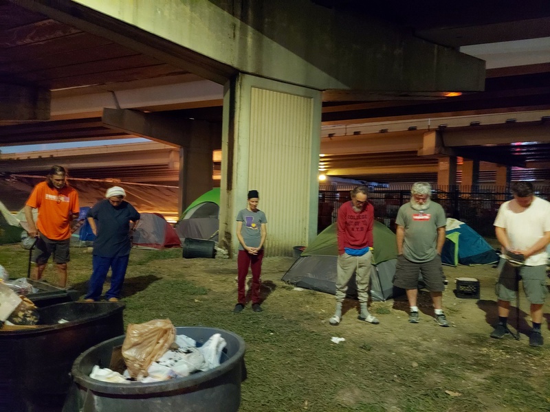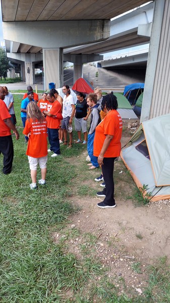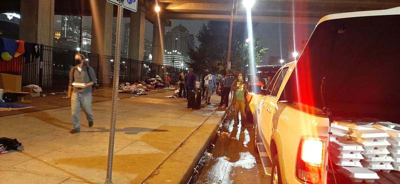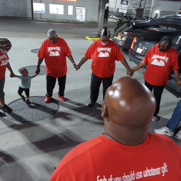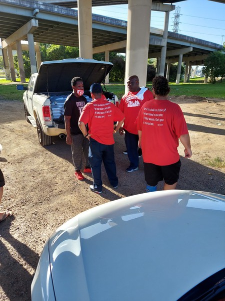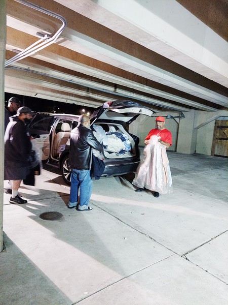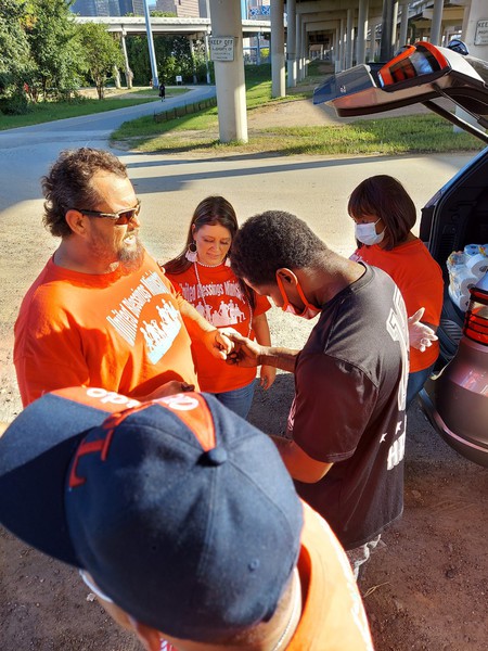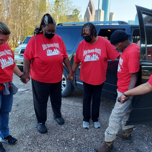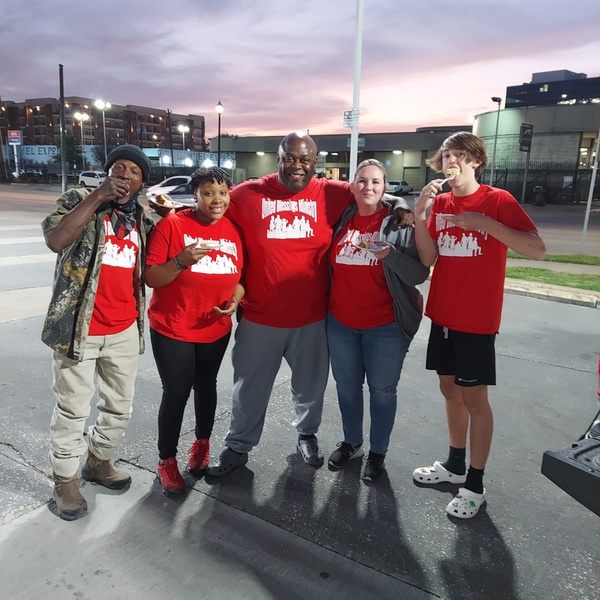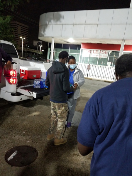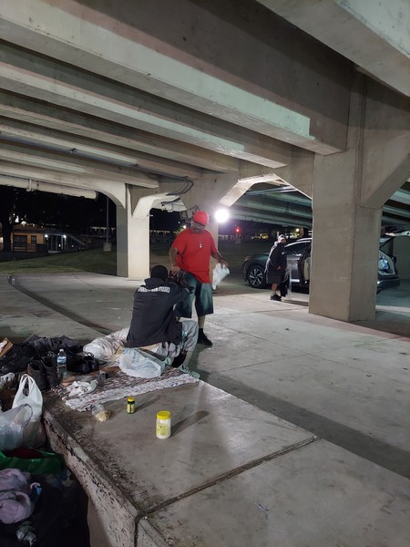 October 16, 2020 - Feeding the homeless homemade spaghetti dinner, provided warm blankets as the temperature dropped in Houston and prayed without ceasing.  Outreach team: Pastor Greg, Scharlene, Big O, Wendy, Apostle Boggas and Pastor Dee Boggas.