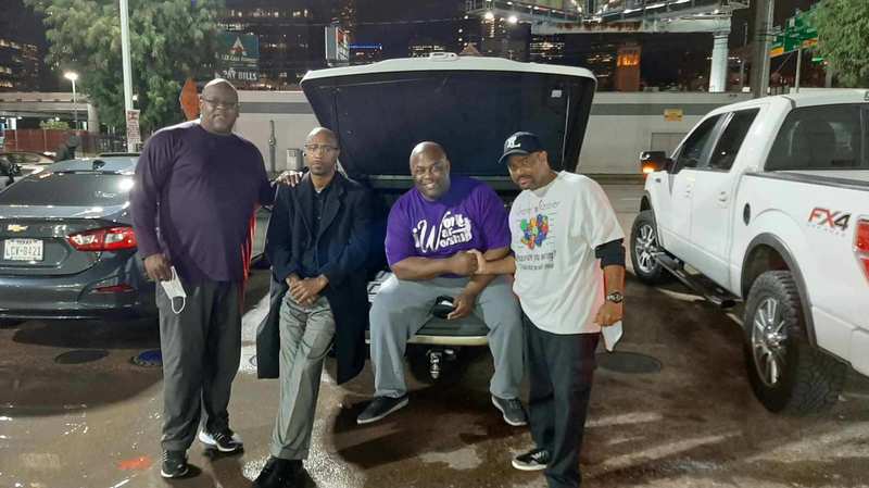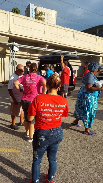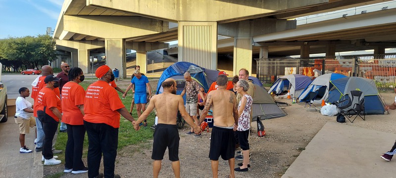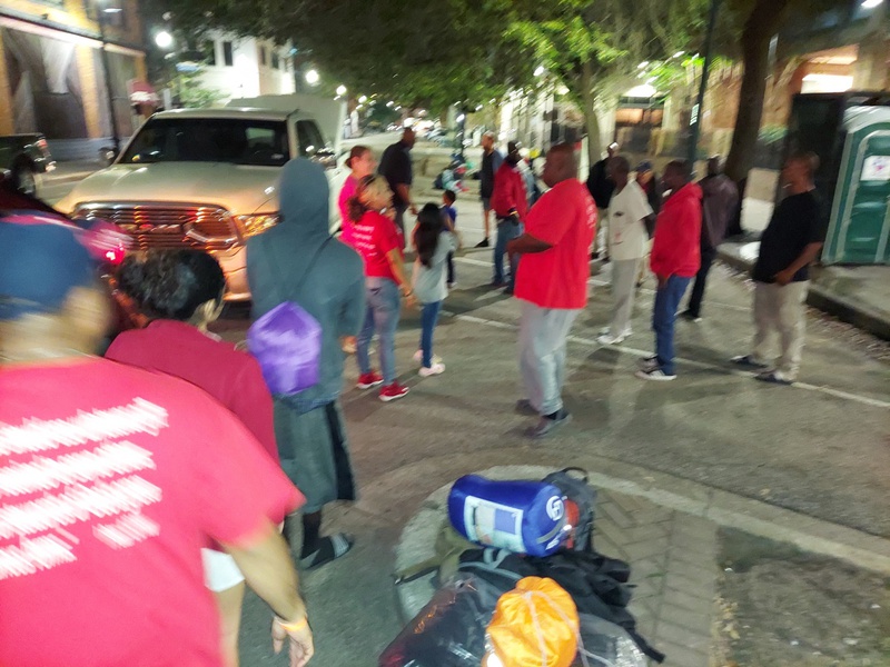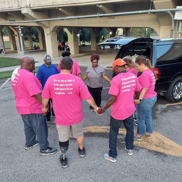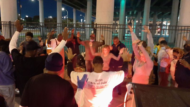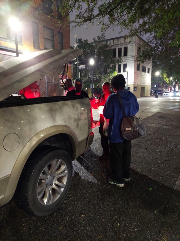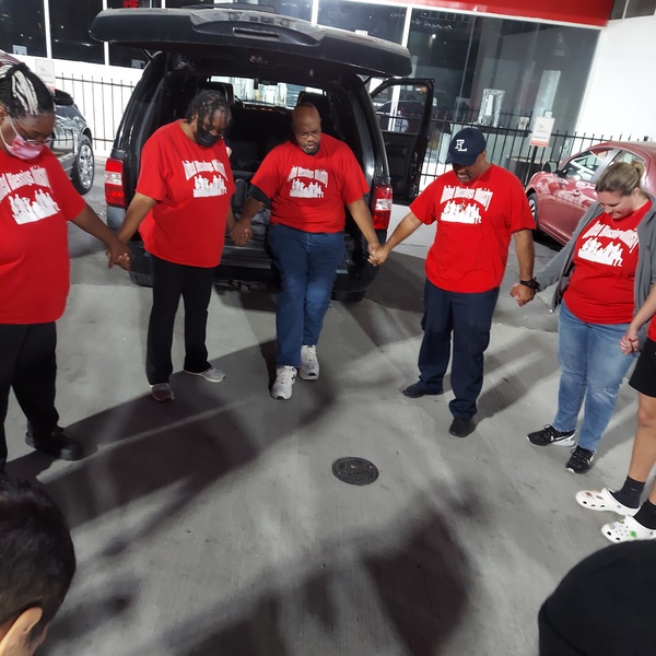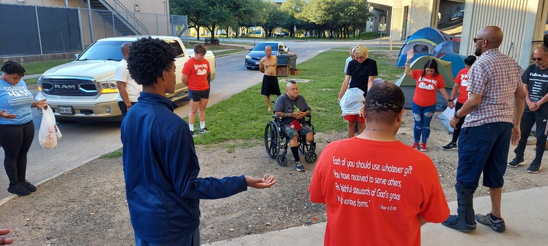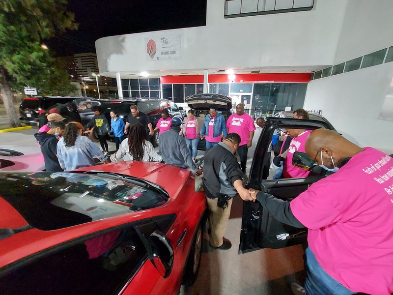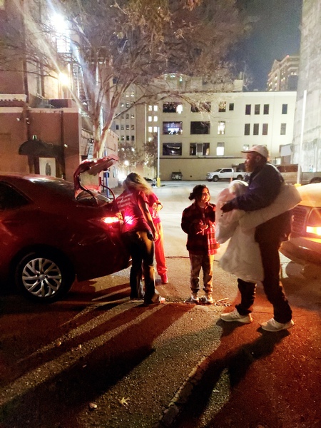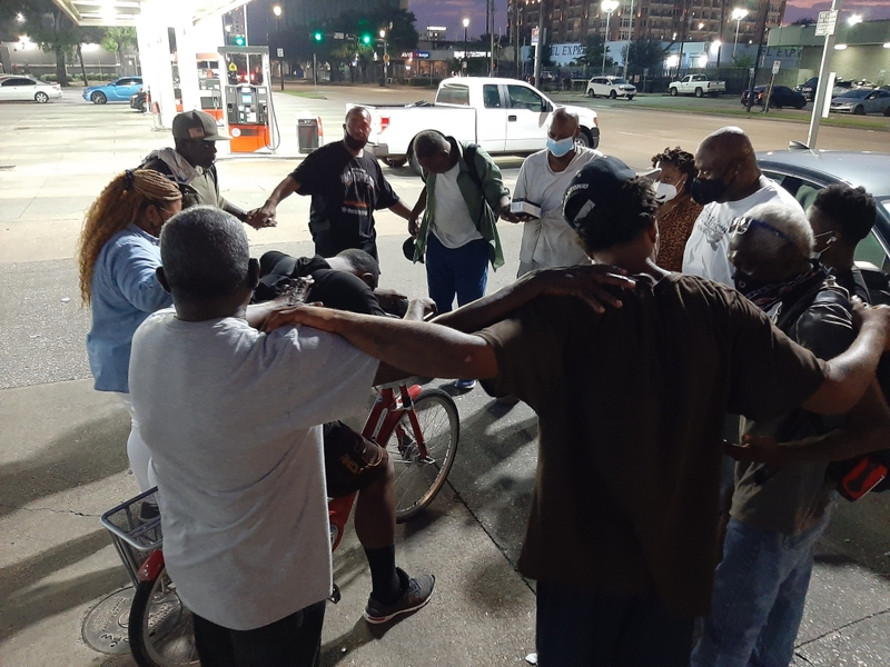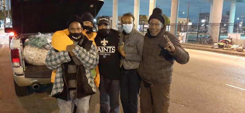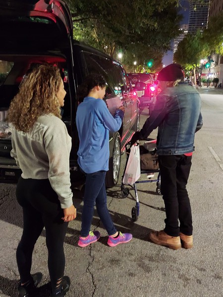 October 16, 2020 - Feeding the homeless homemade spaghetti dinner, provided warm blankets as the temperature dropped in Houston and prayed without ceasing.  Outreach team: Pastor Greg, Scharlene, Big O, Wendy, Apostle Boggas and Pastor Dee Boggas.