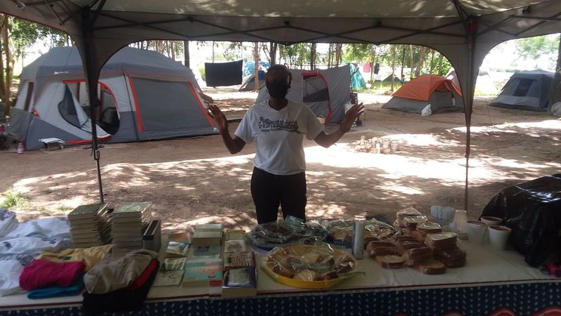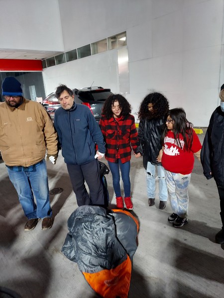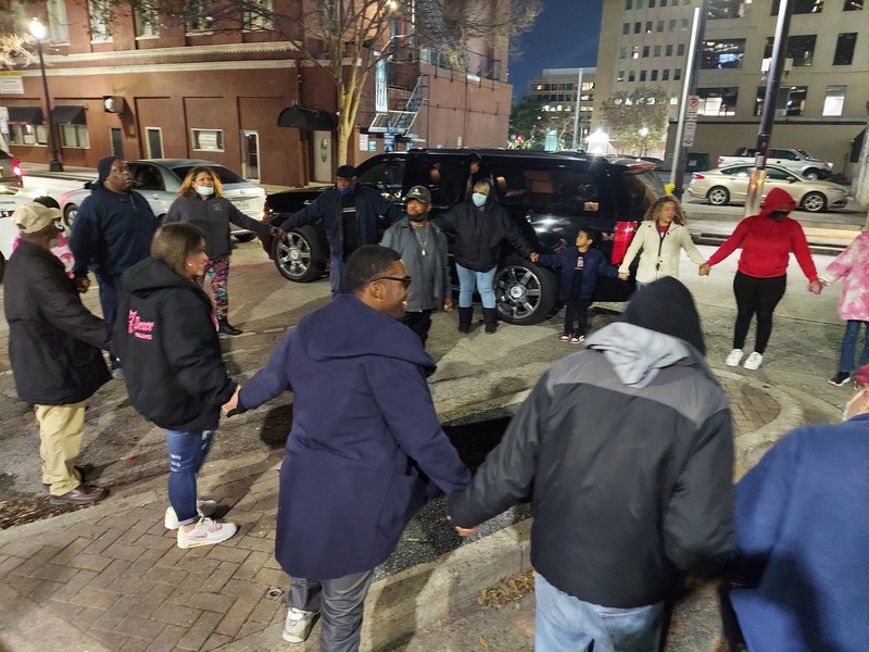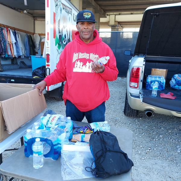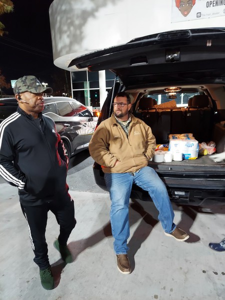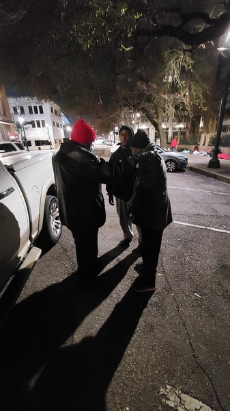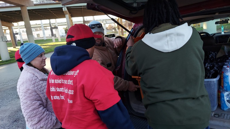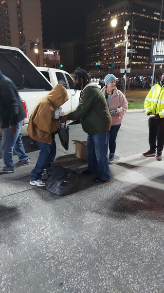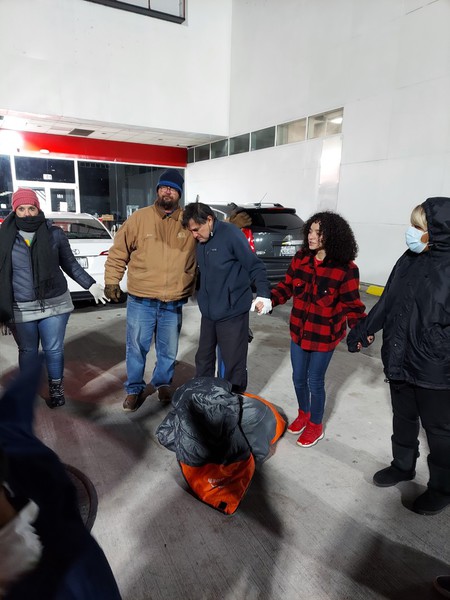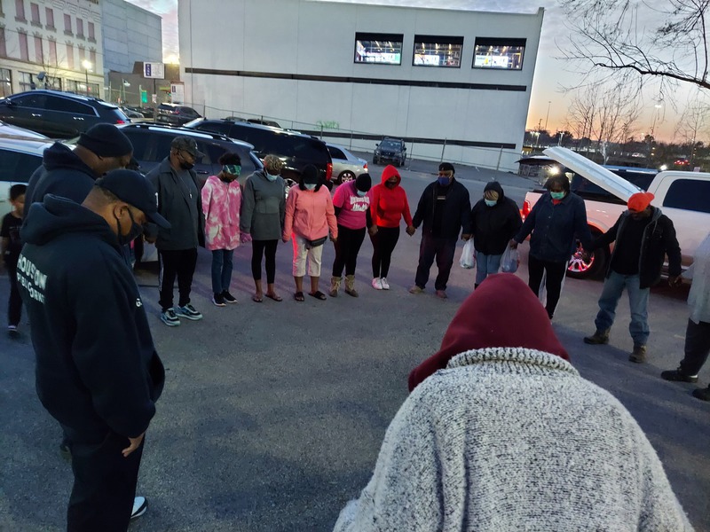 January 8, 2021 - Sharing Homemade Chili & Cornbread, Dessert, Water, Blankets, Toiletries, Bibles and Lots of Prayer.