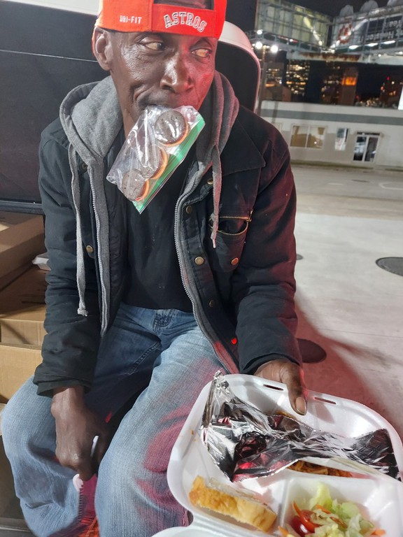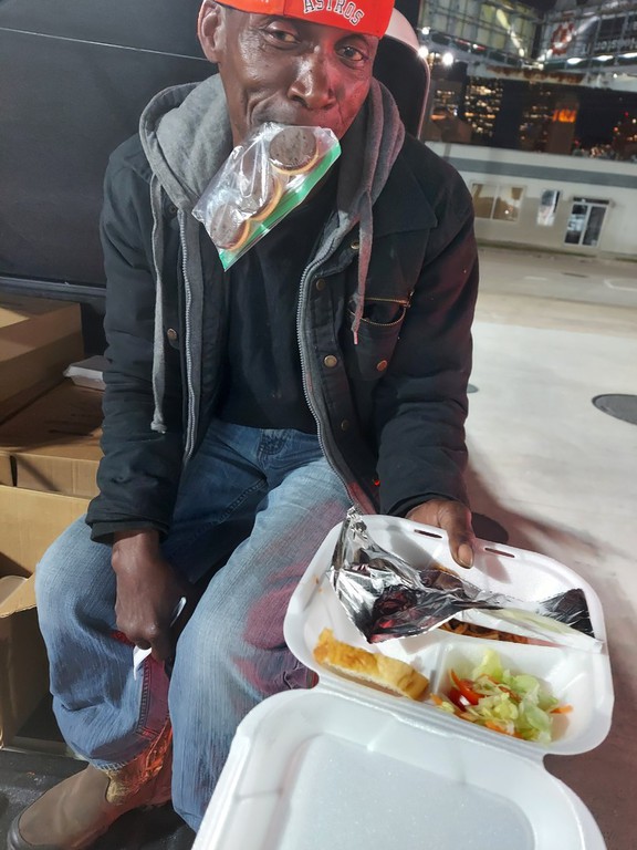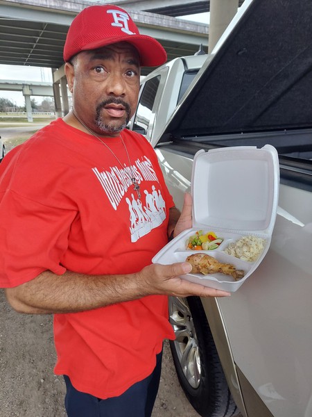 February 4, 2022 - It's cold in Houston.  We provided Fried Chicken dinners tonight.  We had so many prayer requests and thank God they are joining in with prayer and praise!