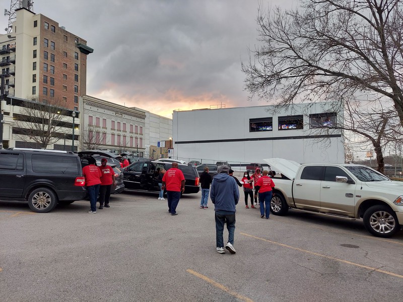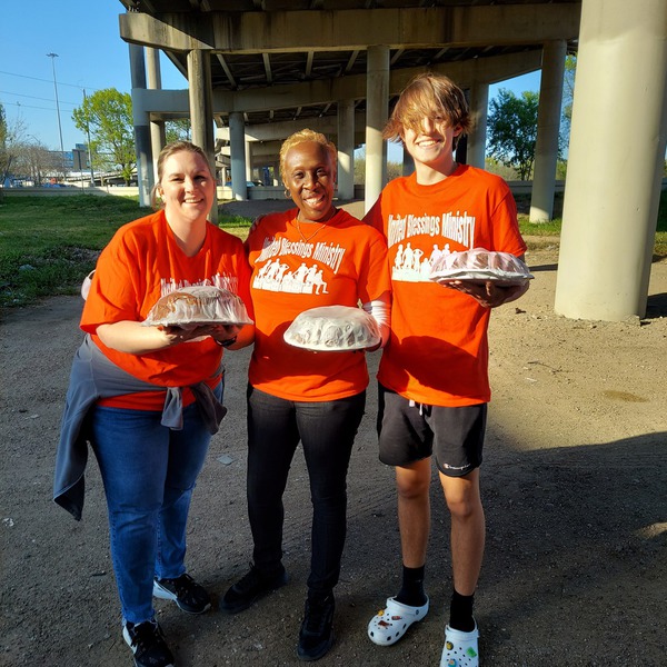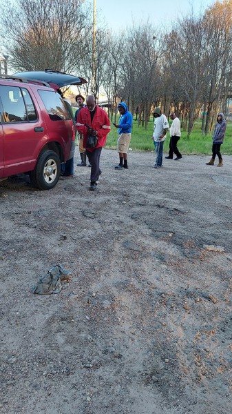 April 1, 2022 the weather was a true Spring evening and we showered our Circle of Love Community with homemade beef pasta with Italian green beans and dinner roll sponsored by Leonard's Resturant.  Special thanks to our dessert sponsor Cousin Polly from Beaumont and Sis. Ruthie for providing an assortment of homemade cakes for dessert that had many of them coming back asking for 2 or 3 more slices.  As always we had plenty of food, hugs, prayers, drinks, hygiene, toiletries, daily bread pamphlet and lots of love.
