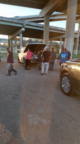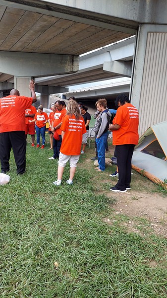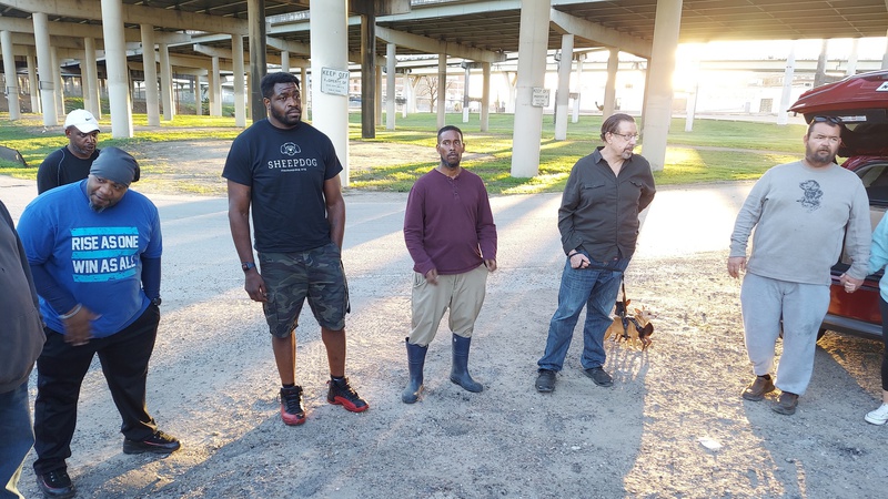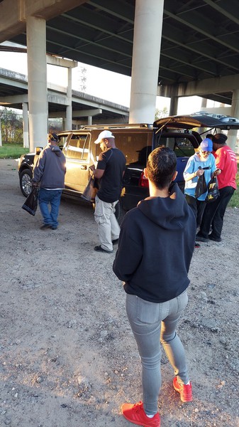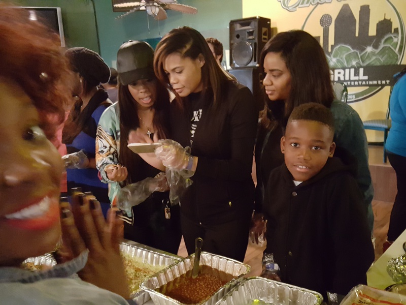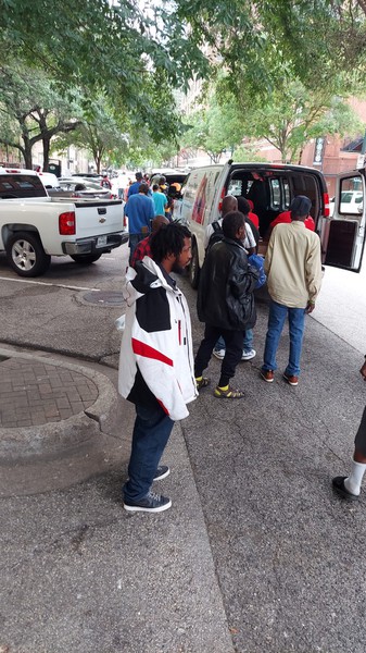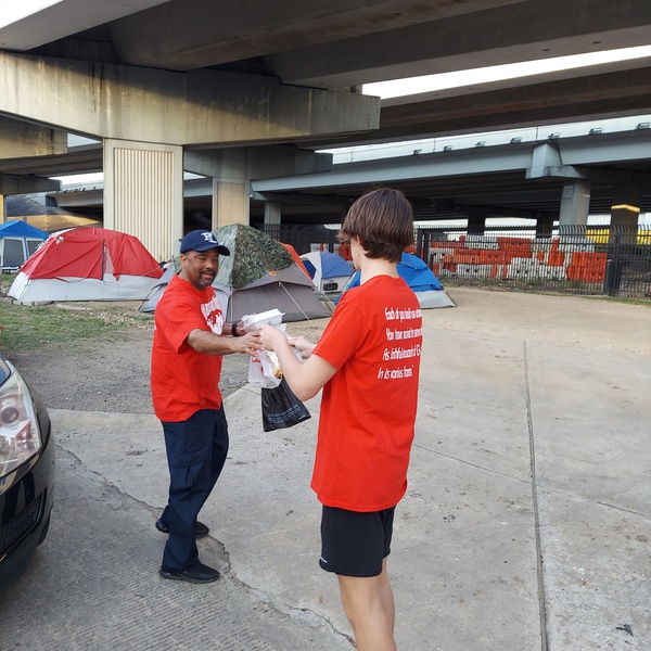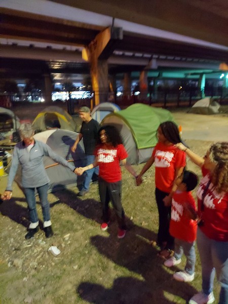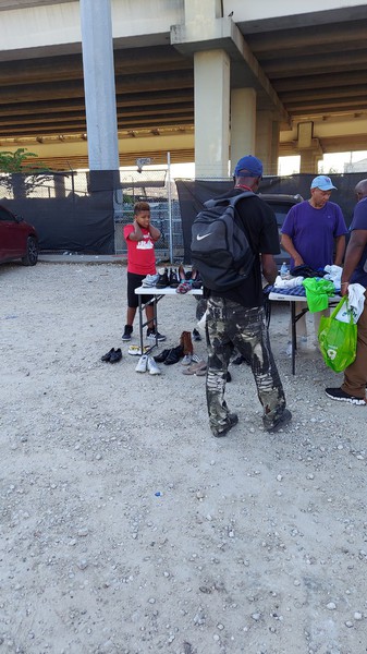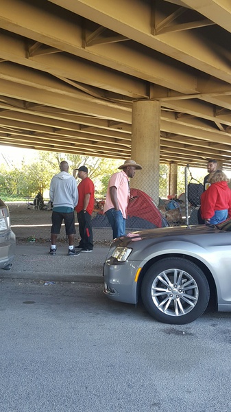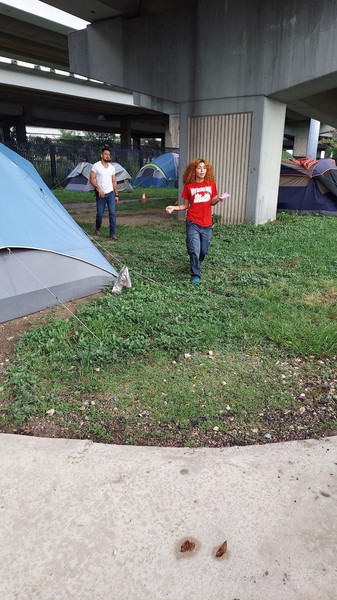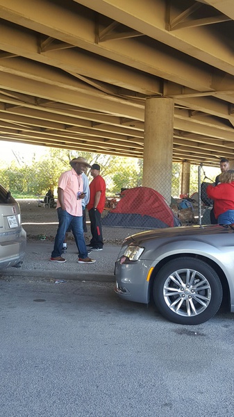 Visiting the homeless at Tent City in Dallas with Coach De'Marquis Brooks and TrueBuzz Athletes, Wednesday, November 23, 2016.