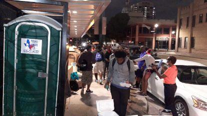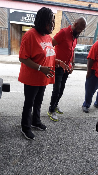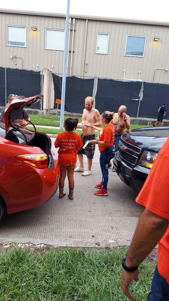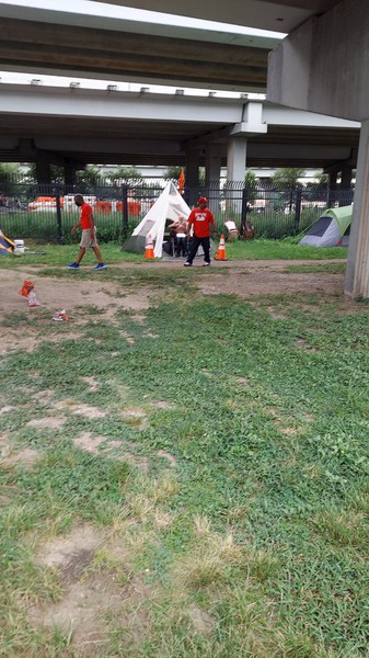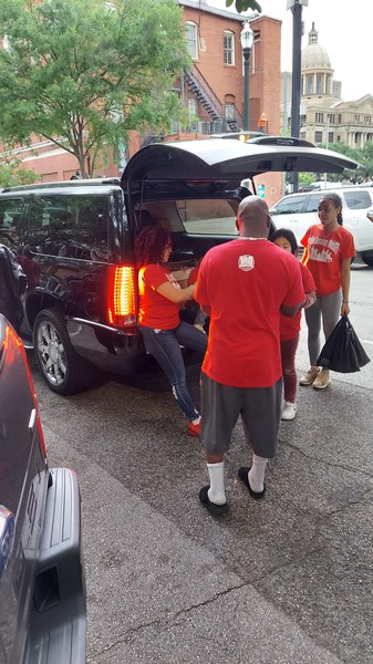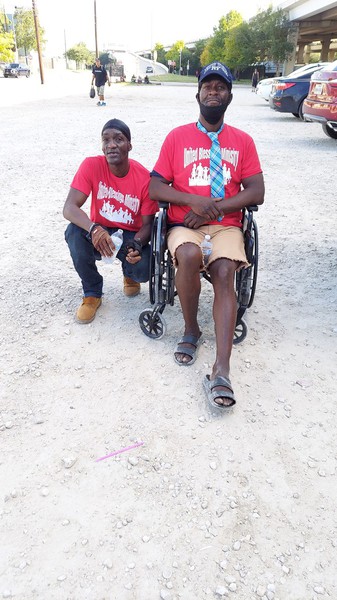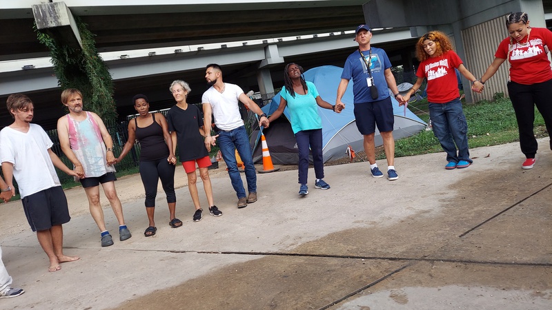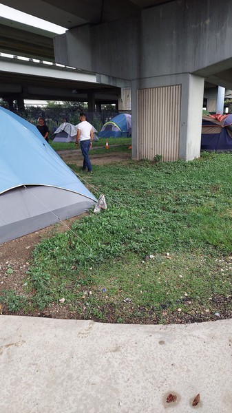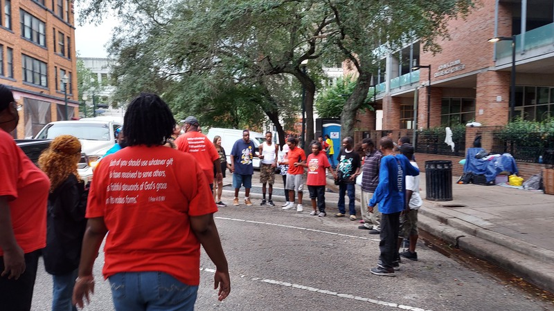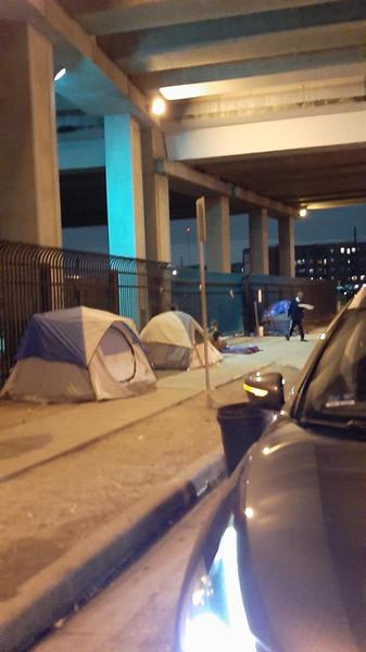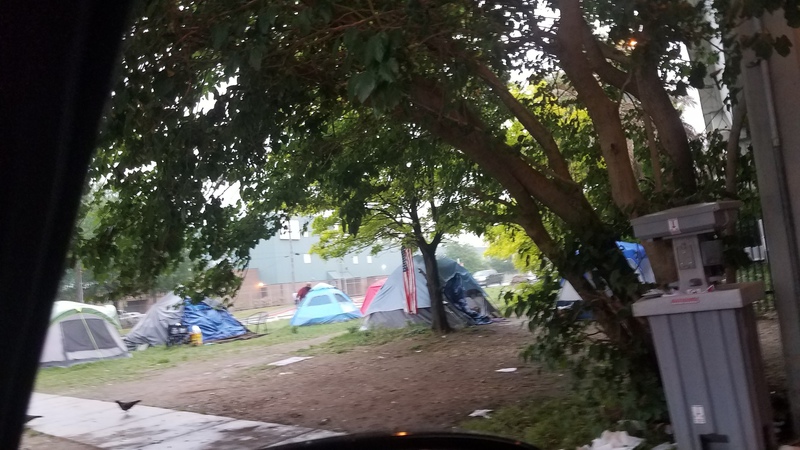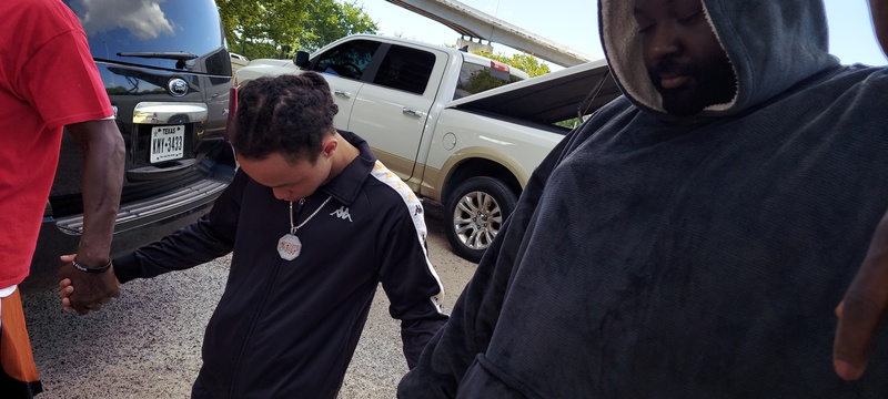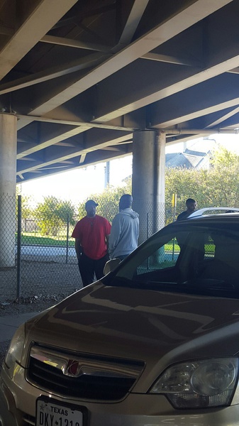 Visiting the homeless at Tent City in Dallas with Coach De'Marquis Brooks and TrueBuzz Athletes, Wednesday, November 23, 2016.