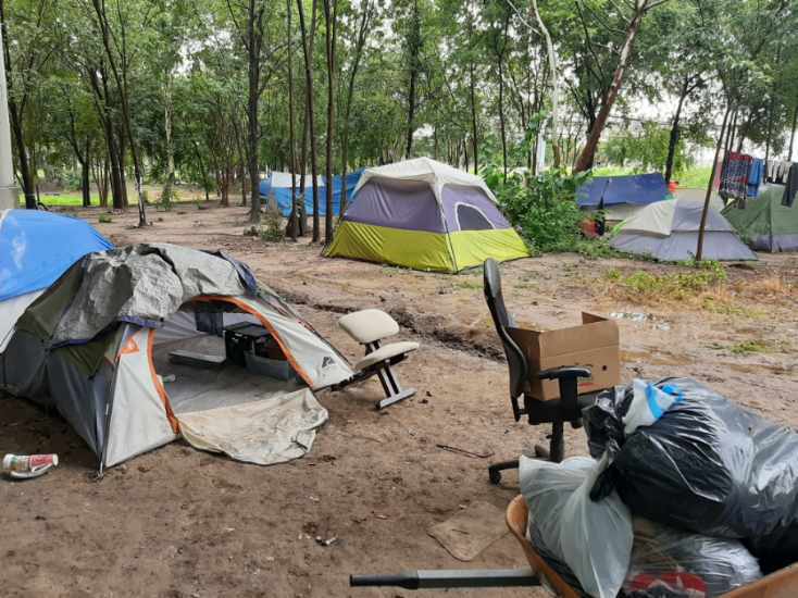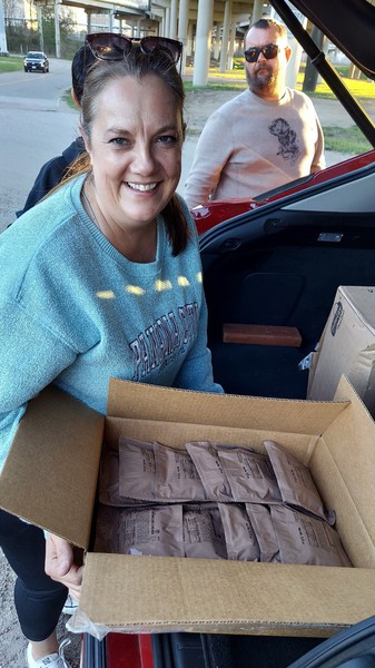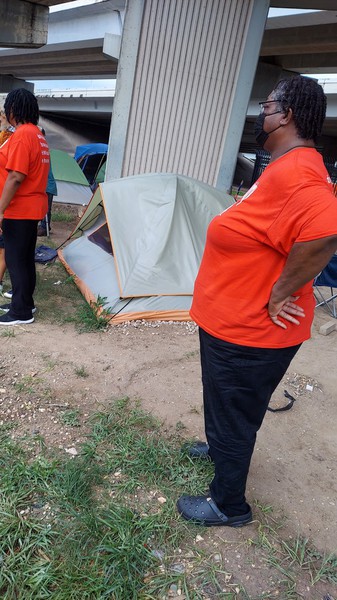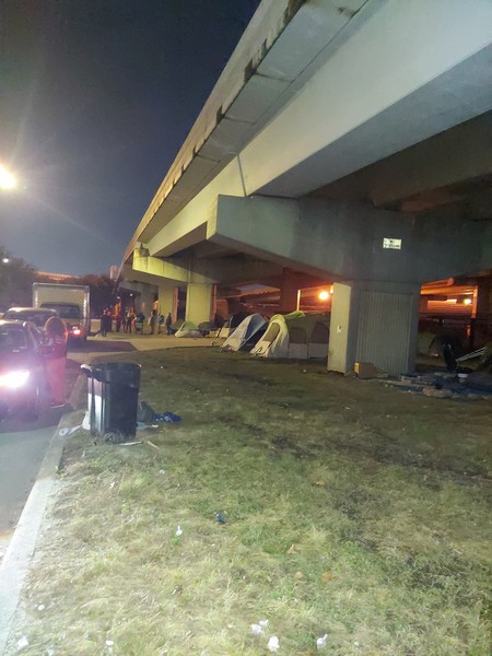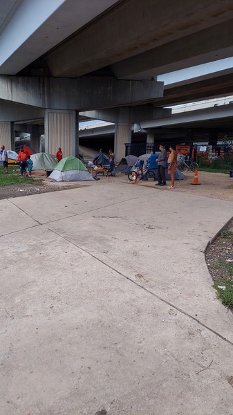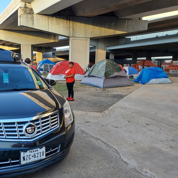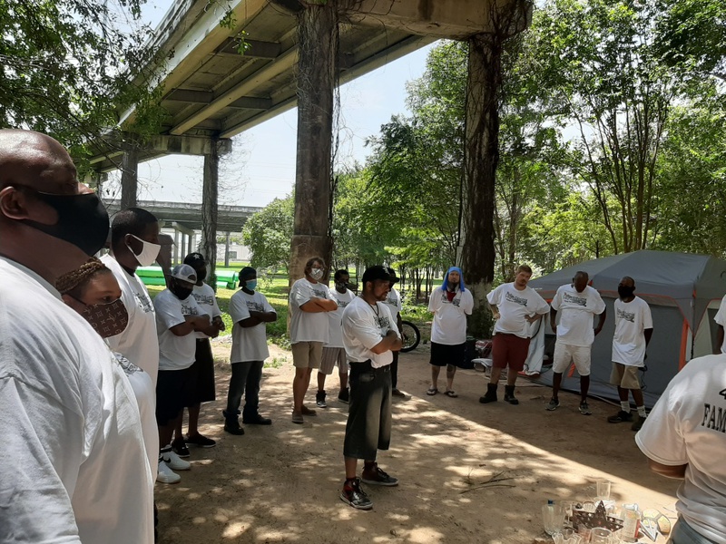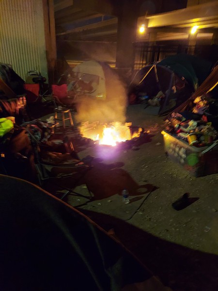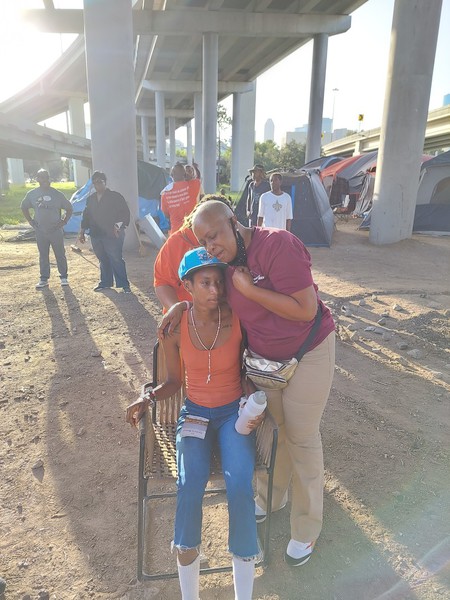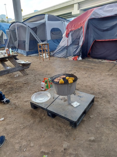 January 21, 2022 - It's cold in Houston so we blessed the community with homemade Chili & Beans, over a bed of rice with cornbread, cookies, milk, juice, water, toiletries and prayers.  The meal was provided by our church family in Navasota. One of our own told us about a new camp and we pulled up on them.  One of the guys said "you all are a homeless caravan bringing us everything we need".  They had a huge below ground fire pit they built to stay warm.  Simply amazing! Thank God that we are blessed to be a blessing to others.