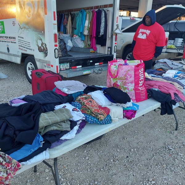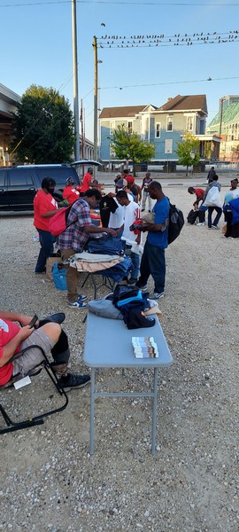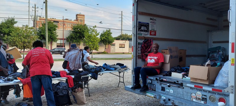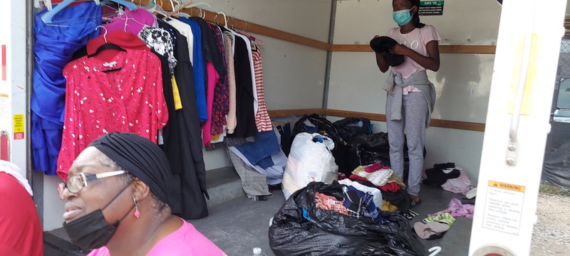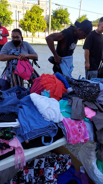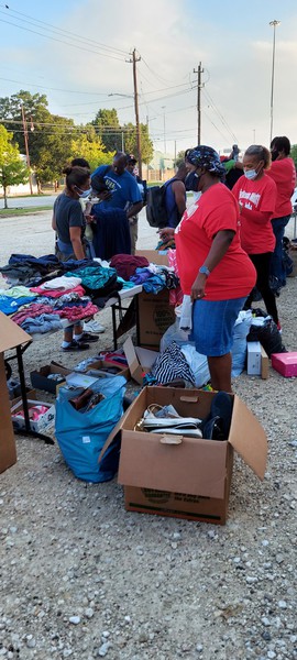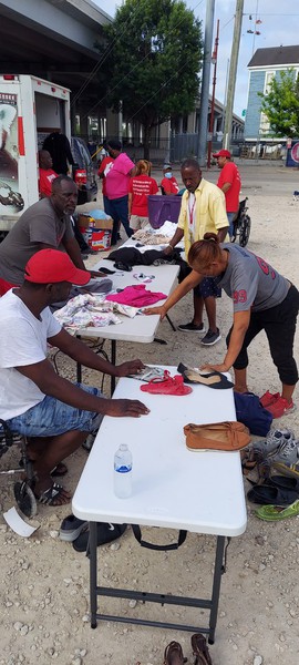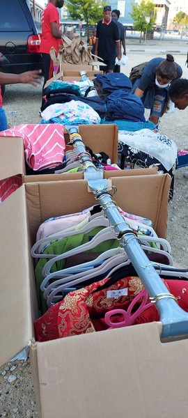 September 18, 2021 - Quarterly Clothing and Food Drive serving sandwhiches, chips and beverages.  We blessed the community with lots of clothing, shoes, and so much more!  We had one young lady give her life to Christ. Hallelujah!