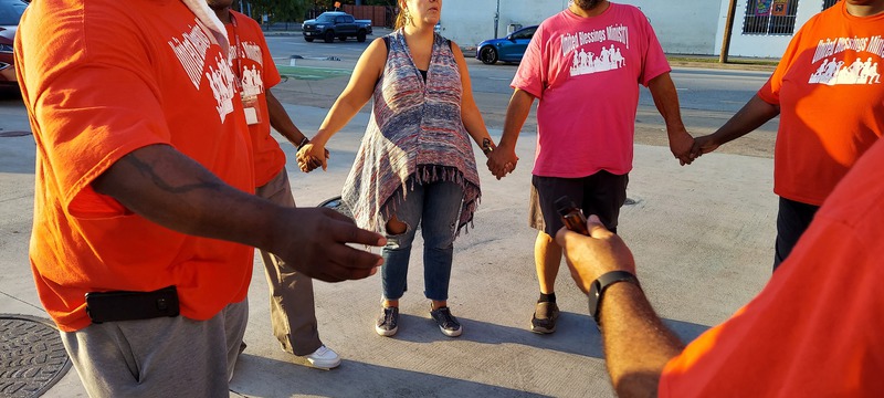September 25, 2020 - Praying with and feeding the homeless communities. Outreach team: Pastor Greg, Scharlene, Oscar, Wendy, Pastor Russell, Angel, Melanie, Cameron, Maria, Baby Skylar, Lil Gregory, Stanley, Adam and his daughter.