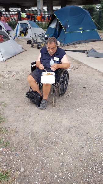 May 7, 2021 - Spaghetti Dinner.  We were so blessed to help Mr. Ward get off the streets. He was ready.  We prayed and anointed the prayer circle in love.  Miracles still happen!
