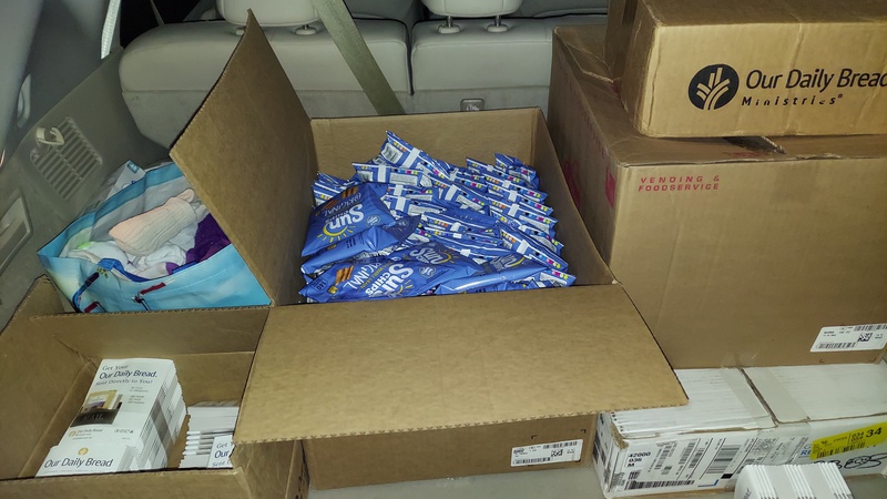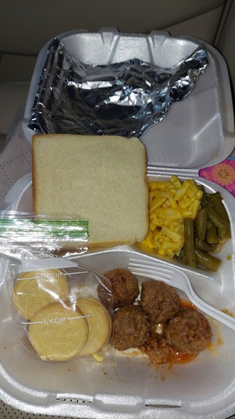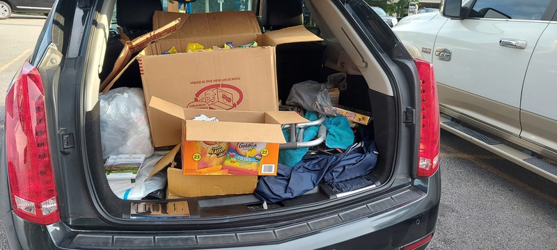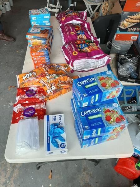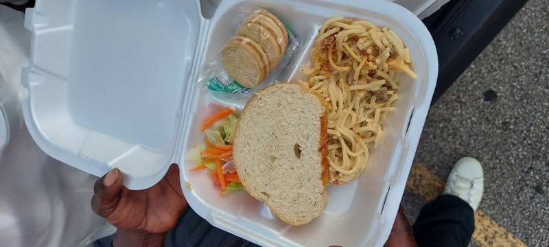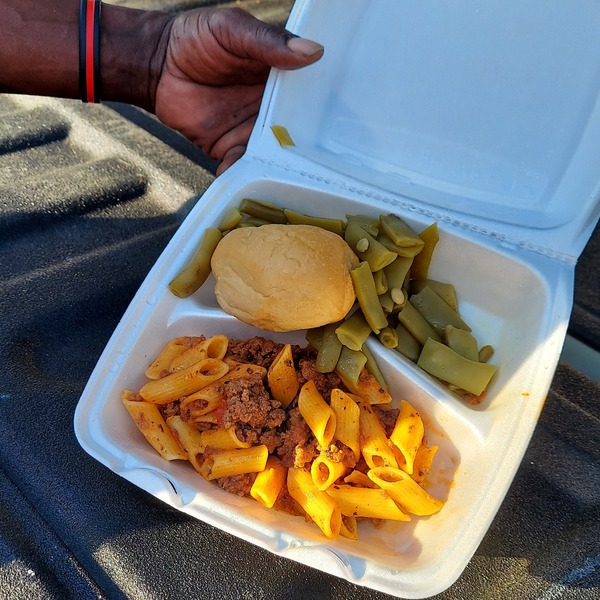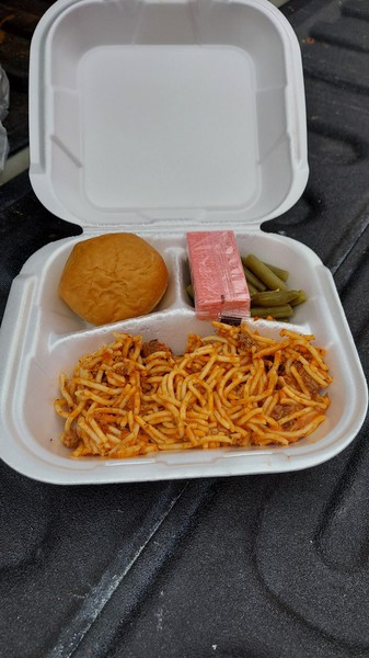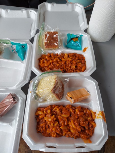 September 2, 2022 Meatballs, Macaroni & Cheese, Green Beans, Cookies, Snacks, Water, Toiletries and Lots of prayer and praise.