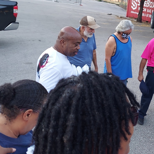 September 11, 2020 - Praying and Feeding the homeless communities.  Outreach team: Pastor Greg, Scharlene, Lil Greg, Pastor Jones, Oscar, Wendy, and Angel.