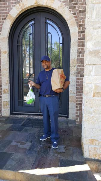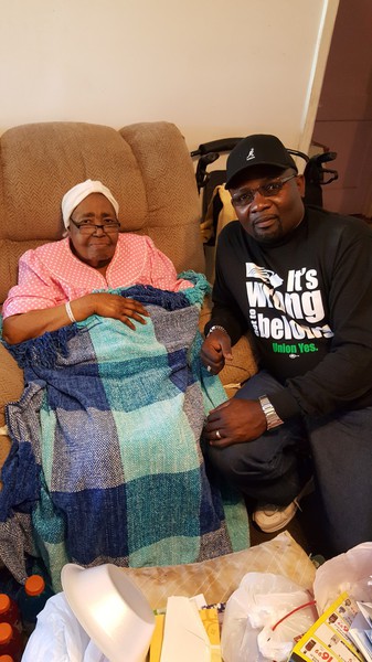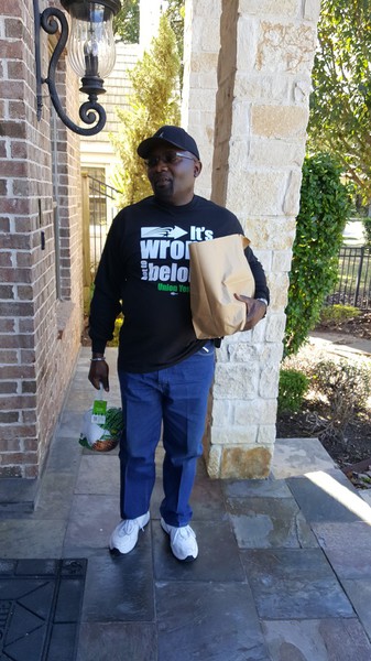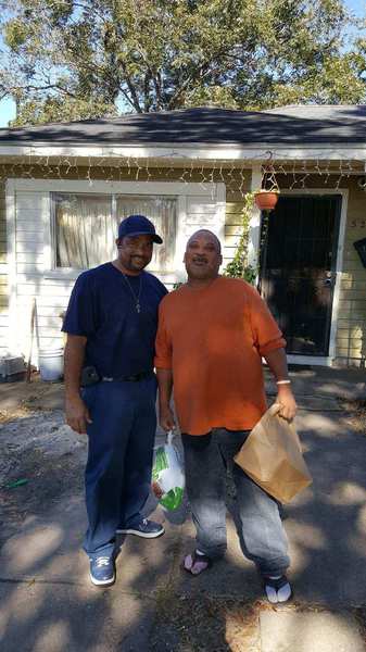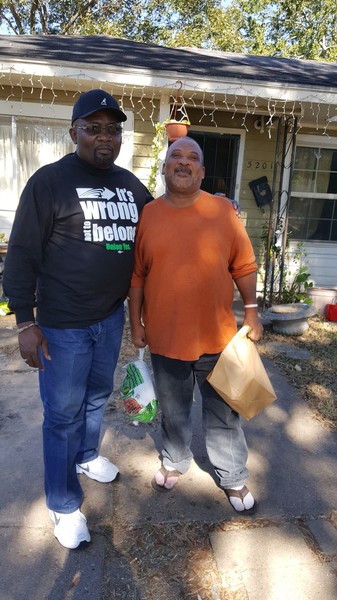 Gregory Williams and Bro. Melvin Hughes visiting families and delivering turkeys in Houston, November 21, 2016.