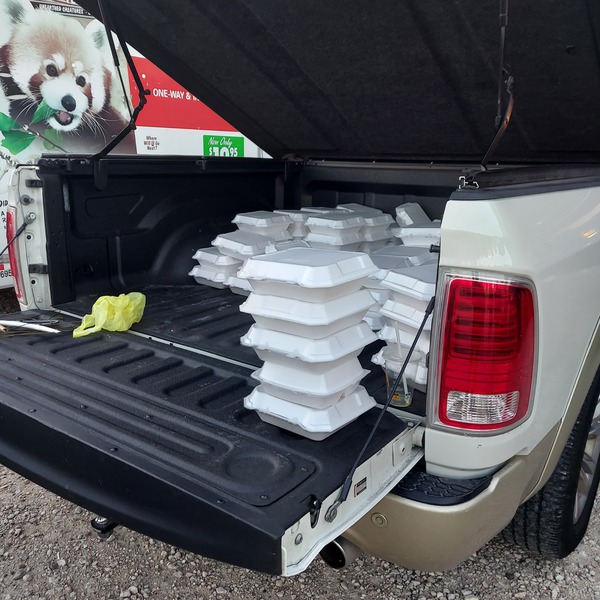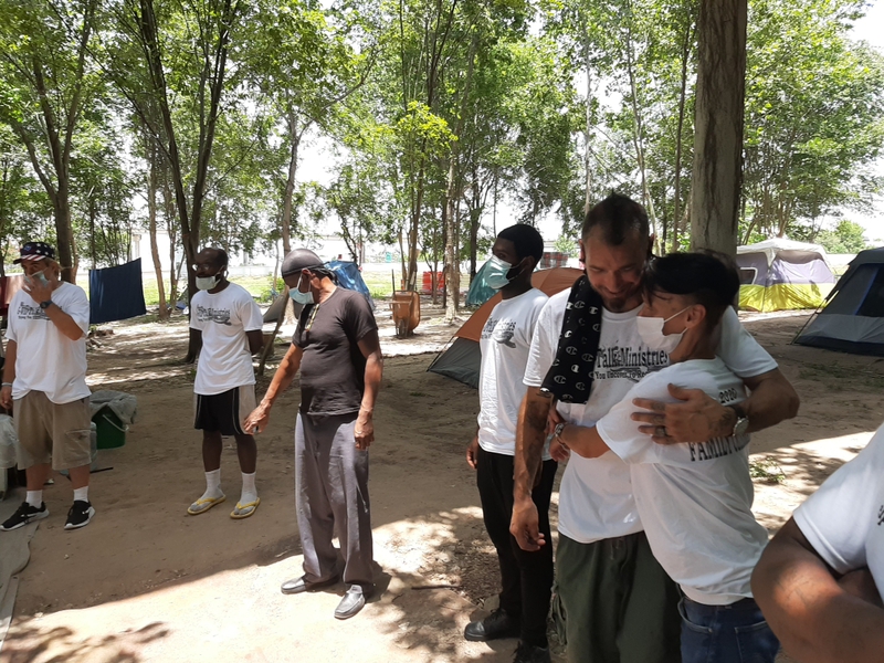 March 4, 2022 we blessed the Circle of Love Community with plenty of spiritual food, hugs and prayers.  We provided baked chicken, rice, vegetable medley, drinks, hygiene, toiletries, socks, bibles, daily bread pamphlet, and lots of love.  We even had bundles of firewood to keep one of the camps warm. God is so good.  We thank Leonard's Restaurant for providing the meals.