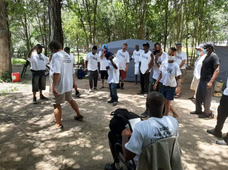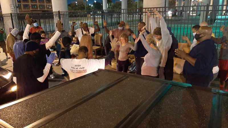 Created a "CIRCLE OF LOVE" 4th of July 2020 Family Celebration with food, t-shirts, books, bibles, shoes, socks, clothes, hugs, love, laughter, sharing, caring and prayer!  Outreach team - Oscar, Wendy, Pastor Jones, Steve, K-Mac, Pastor Z, Pastor Clark, Scharlene and Pastor Greg.