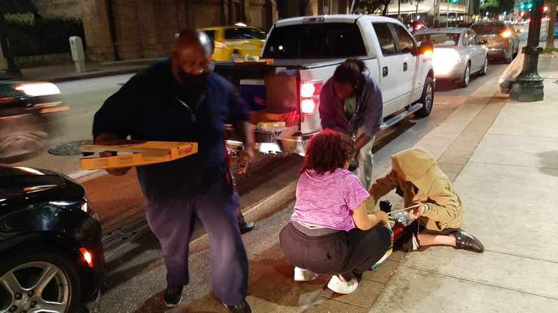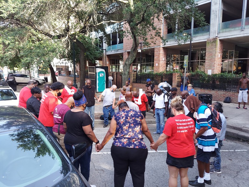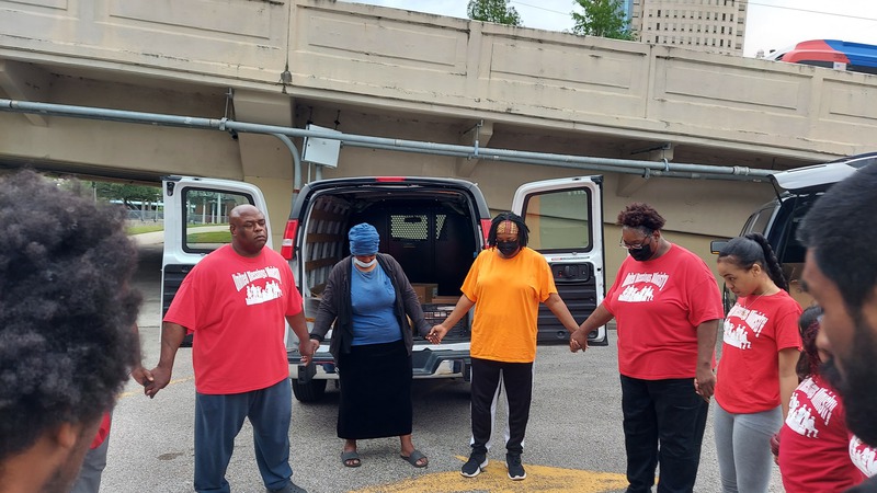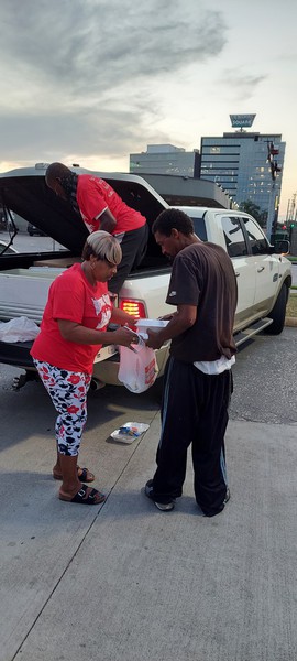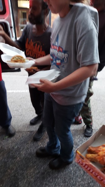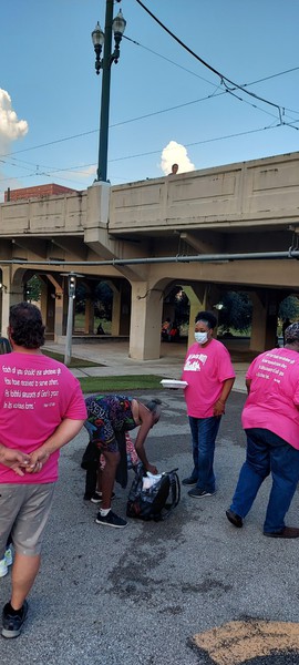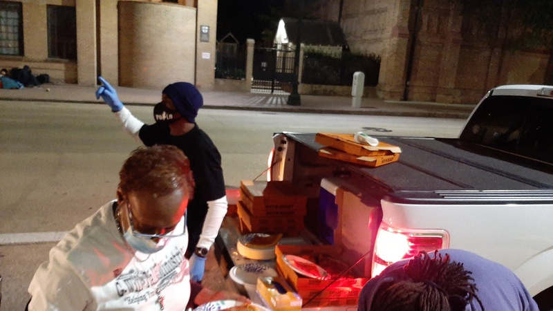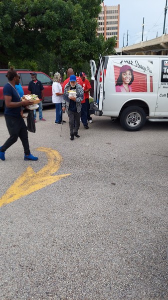 October 2, 2020 - Feeding the homeless and praying for the community.  Thanks for Just Us BBQ Partnering with us!