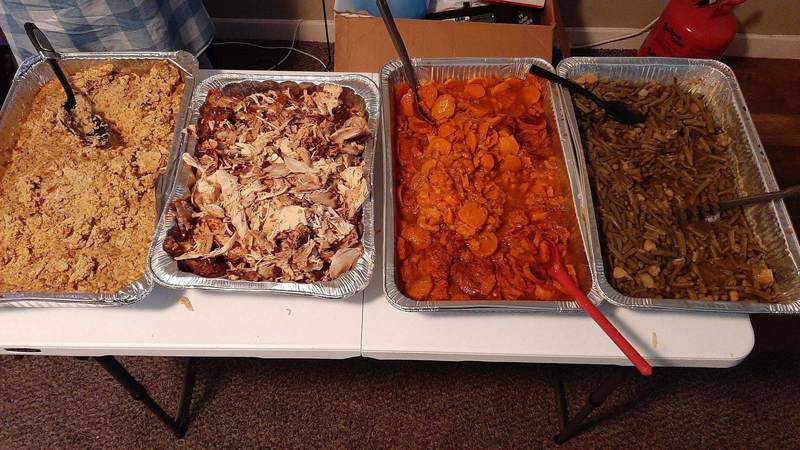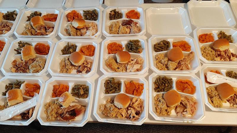November 13, 2020 - Celebrated Thanksgiving with good ole down to earth home cooking: Turkey, Dressing, Candied Yams, Green Beans, Roll, Dessert, Soda, Water, Socks, Hygiene Gifts and Masks.  As a group of ministries coming together working together we named this project UBM (United Blessing Ministries).