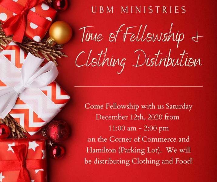 December 12, 2020 - G-Will Talk Ministries and UBM Christmas Fellowship, Lunch & Clothing Giveaway.