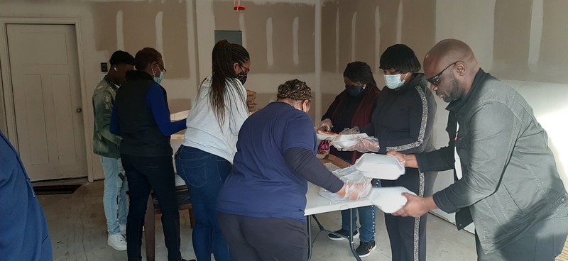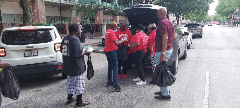 February 5, 2021 - Really enjoyed bringing smiles to our community with Fried Chicken, Potato Salad, Green Beans with Turkey, Roll, Dessert, Beverage, Hygiene, and many powerful prayer circles.  We celebrated and sung Happy Birthday Queen to one of our amazing UBM members with cake for the everyone.  We love you Queen and thanks for your committed service!