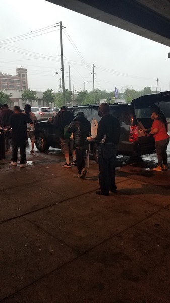 April 16, 2021 - Pizza Time with our Circle of Love Community.  With a night full of rain, we were able to bless so many tonight with a meal, snacks, beverages, hygiene, toilet paper, wash cloths, daily bread book, masks, hug, prayers, and hope.  Special thanks to Trina visiting from North Carolina, and Mr. James for bringing his wife, Melissa, teenage sons Grant, Michael and Emway to serve with UBM tonight.