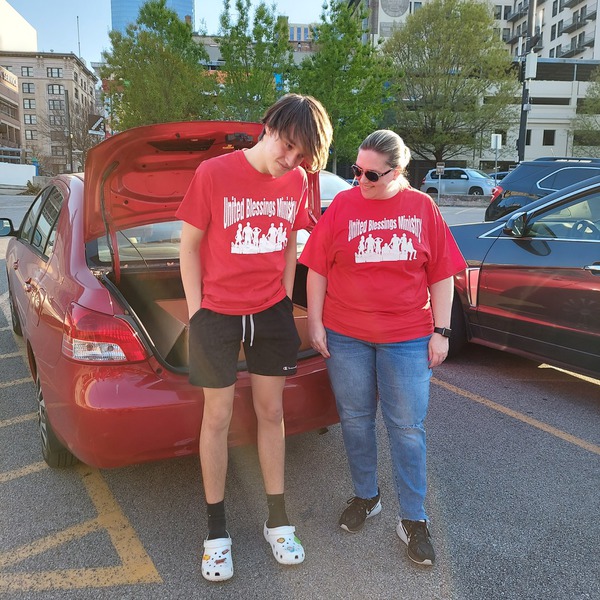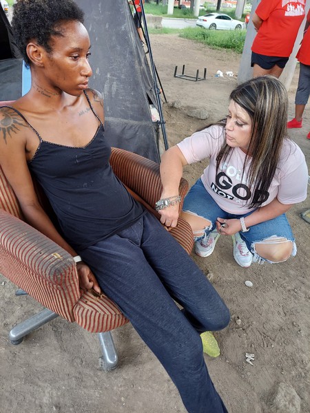 July 8, 2022 It's Pizza Time for the Circle of Love Community loaded with lots of items they need.  We shared plenty of love and prayers with the family.  One of the ladies asked to go out with us on our next outing as a volunteer so we blessed her with a UBM ministry shirt.  God is so good!