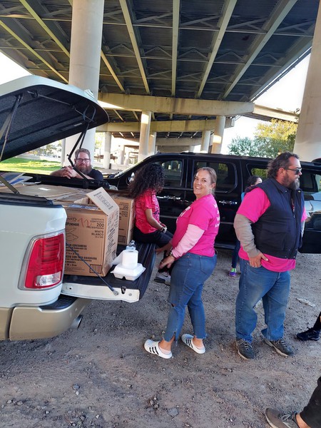 October 28, 2022 was amazing as we blessed the Circle of Love Community with another home cooked spaghetti dinner and tangerines from our Navasota family.  We also had lots of luggages, tote bags, toiletries, drinks along with plenty of praise and prayers.