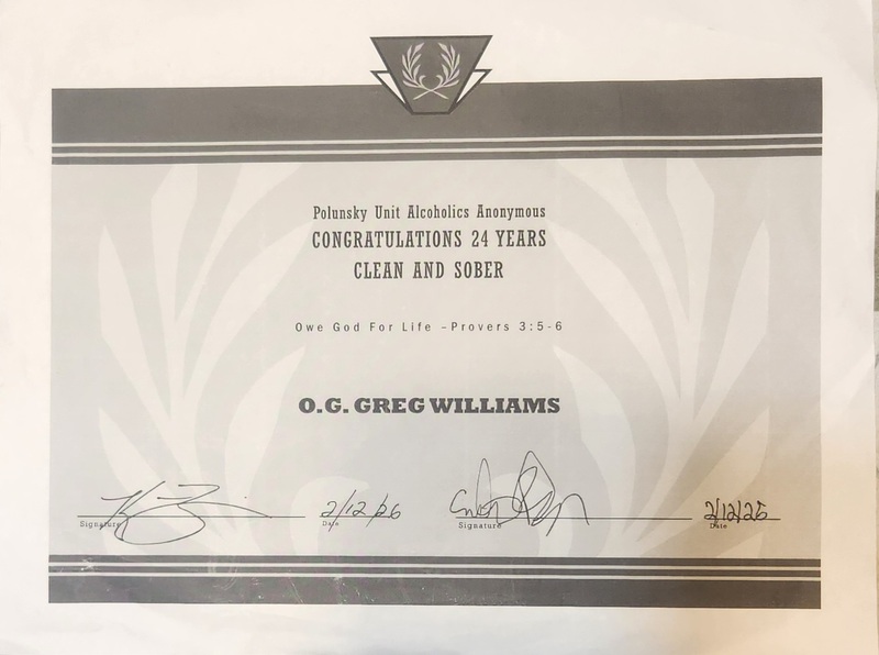 Prison Fellowship 2-12-2026 (Sobriety Date) and 2-20-2026 and was truly blessed by the OG For Life family behind bars with a 24 years of Sobriety Card and Certificate